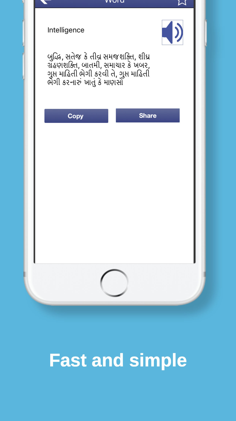 Easy to search Gujarati meaning of English word. Copy, Share, Favourite or Listen words. Play quiz and improve knowledge.. We're having collection of 42000 words. Application will display quiz of English to Gujarati words as well.