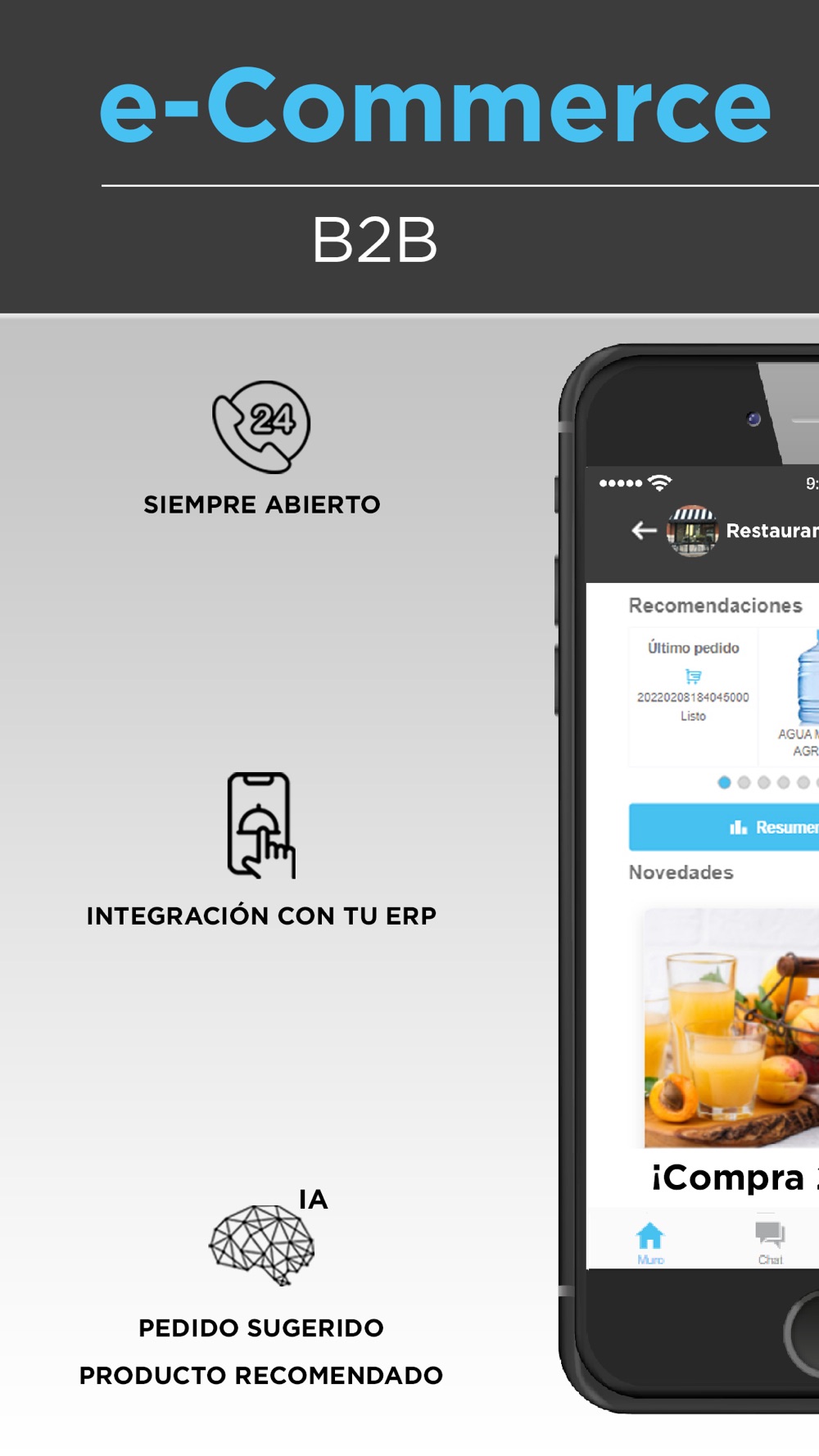 All the catalogues on your smartphone, converted into an e-commerce shop designed for you, so you can order without schedules. In addition, keep in direct contact with your distributor's seller through chat and optimize your management time.