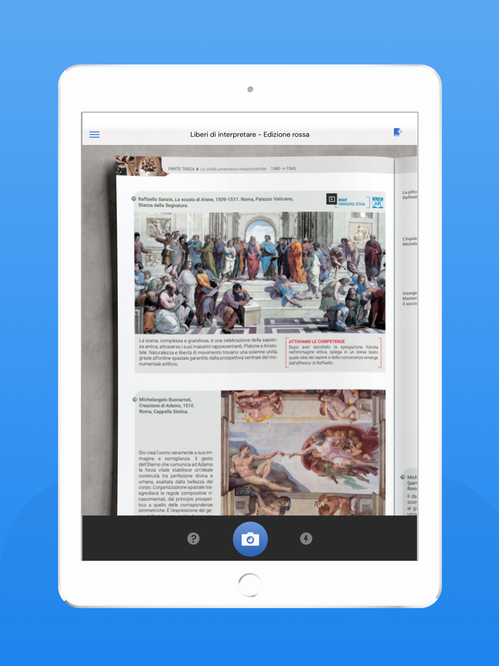 Palumbo AR è l’app che ti consente di accedere rapidamente ad una selezione dei contenuti multimediali del tuo libro di testo cartaceo dal tuo smartphone o tablet, ovunque ti trovi. Inquadra con lo smartphone o il tablet le pagine del libro di testo che riportano il simbolo "Palumbo AR" e accedi ai contenuti a esse collegati.
