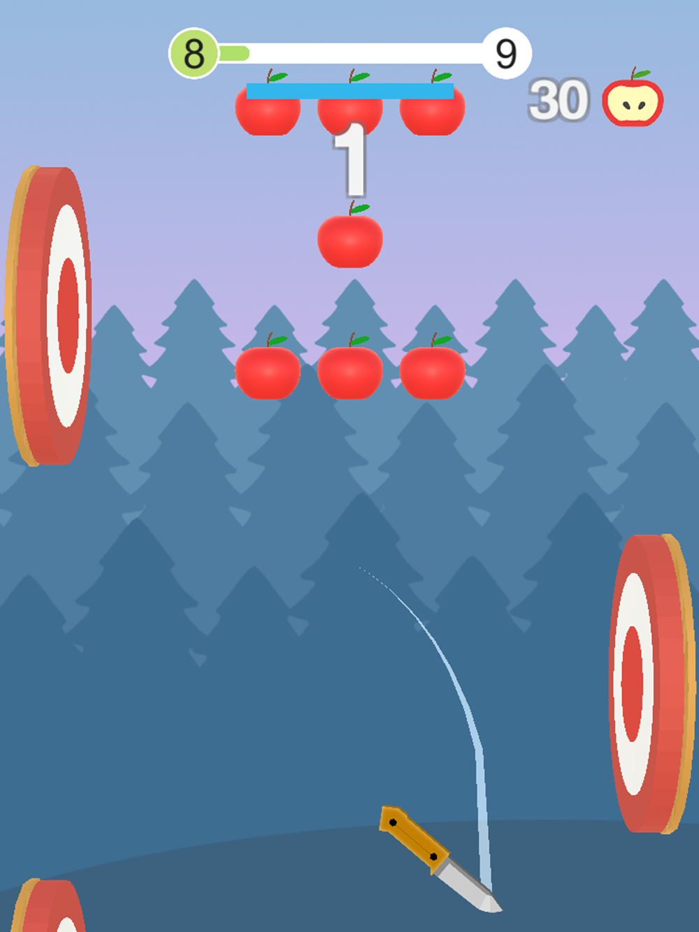 Tap your finger to flap the knife, enjoy hit the targets, collect apples and unlock all the knifes!