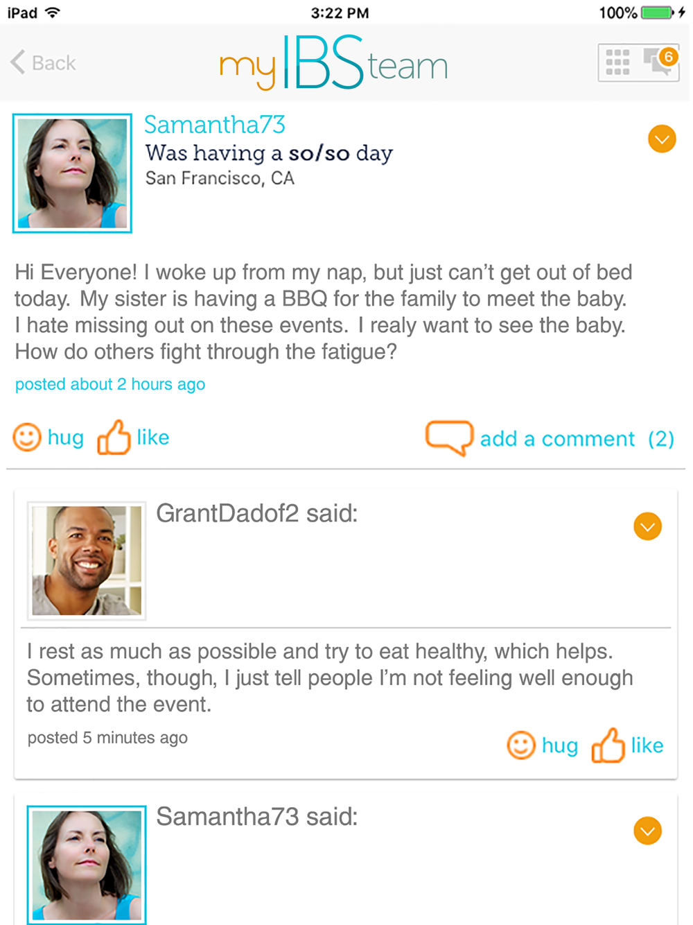 myIBSteam is a social network and support group for those living with IBS. Get the emotional support you need from others like you, get practical tips to manage your life with IBS, and insights about treatment or therapies. myIBSteam is the only social network where you can truly connect, make real friendships, and share daily ups and downs in a judgment-free place.