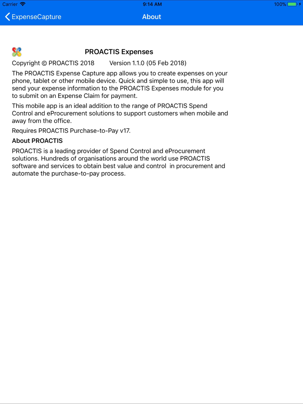 This mobile app is an ideal addition to the range of PROACTIS Spend Control and eProcurement solutions to support customers when mobile and away from the office.