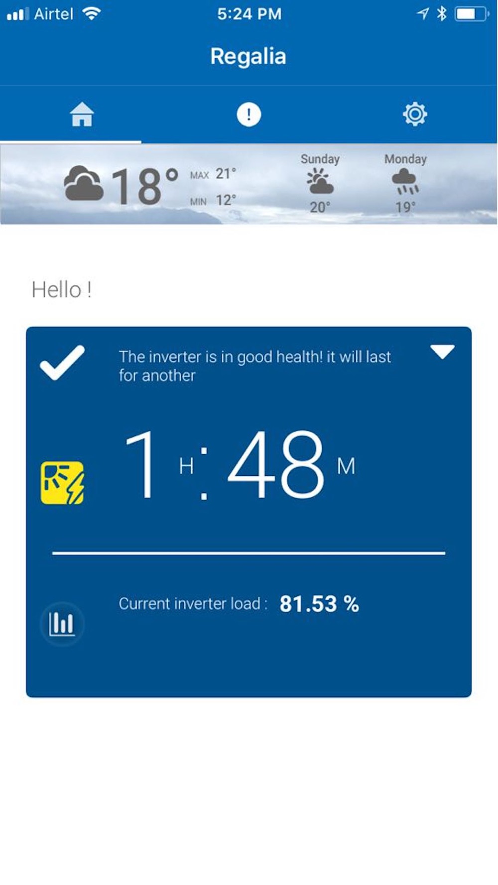 This innovative and user friendly app provides you with precise, accurate and real time status of your Regalia. The application display will enable you to view the following parameters under Home Tab