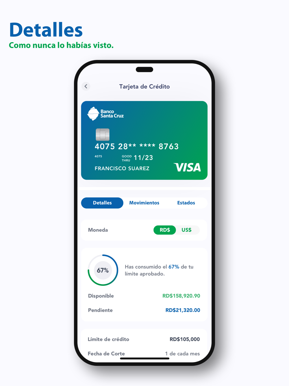 Con el App Santa Cruz desde tu dispositivo móvil tendrás acceso a los servicios electrónicos Bancanet, así como a informaciones relevantes y de interés tales como: Novedades, Beneficios, Contáctenos y Ubíquenos.