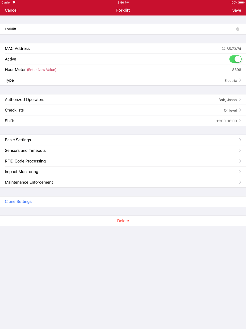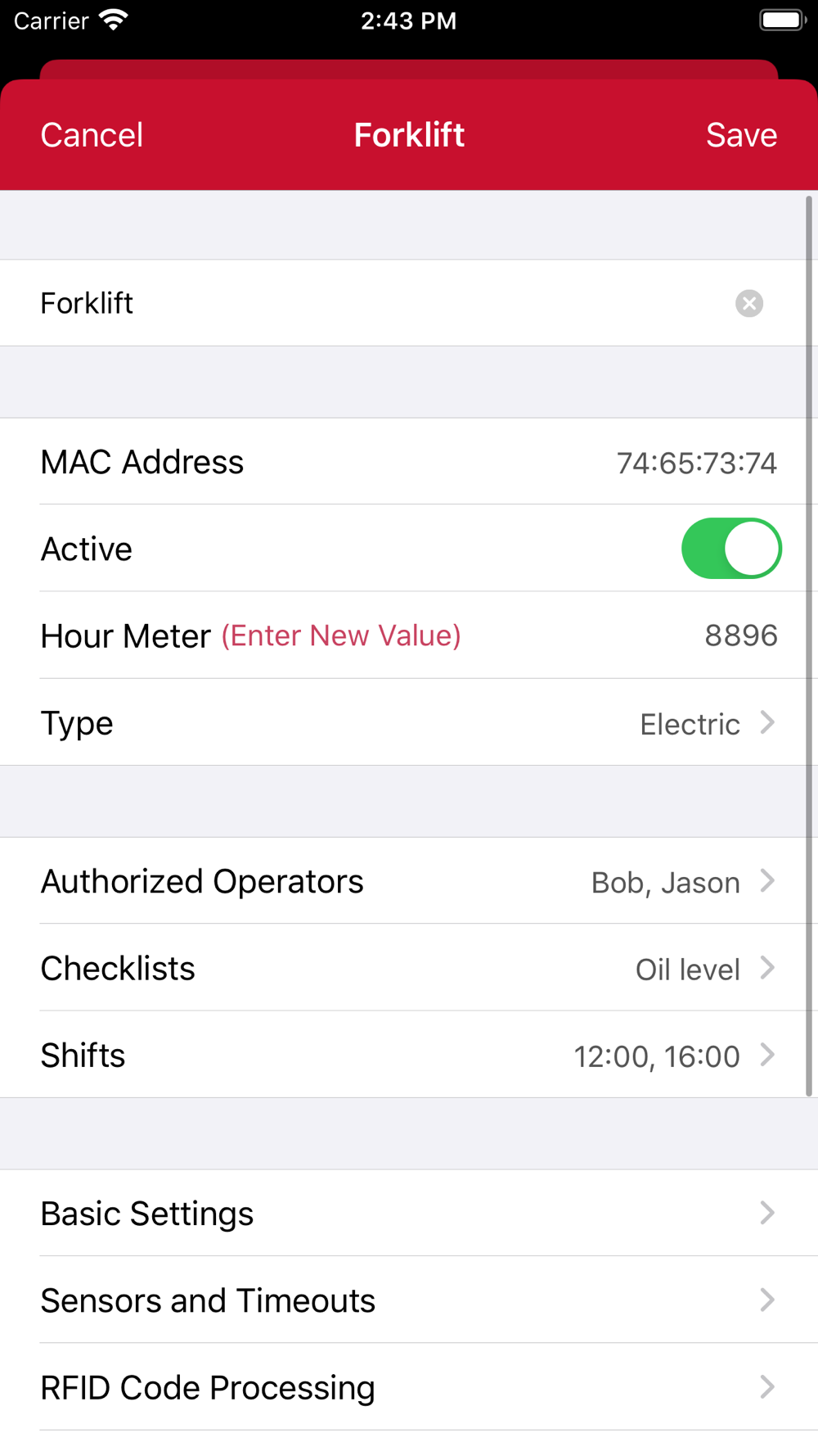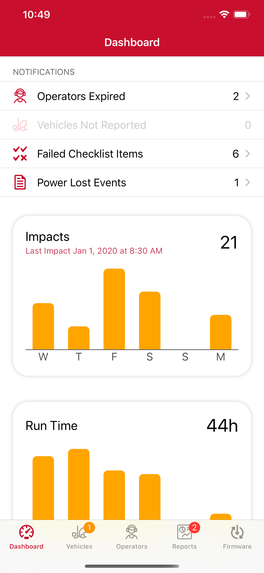 PowerFleet Essence consists of the compact OC53 hardware and the PowerFleet Control Center iOS software application installed on an iPad or iPhone. Supported devices include iPhone 6 or later, iPad Air2 or later and iPad Mini4 or later. Any of these must be running iOS 11 or later. Communication is Bluetooth based with no requirement for any site wireless infrastructure. The intuitive Control Center application automatically records and uploads/downloads key vehicle/operator data to and from OC53 units. Additionally, the PowerFleet Control Center application can be configured now for English, Spanish, German and French language support. The OC53 provides electronic safety checklists via built-in display. It easily installs on virtually any industrial vehicle and incorporates the latest accelerometer technology internally for impact detection.
