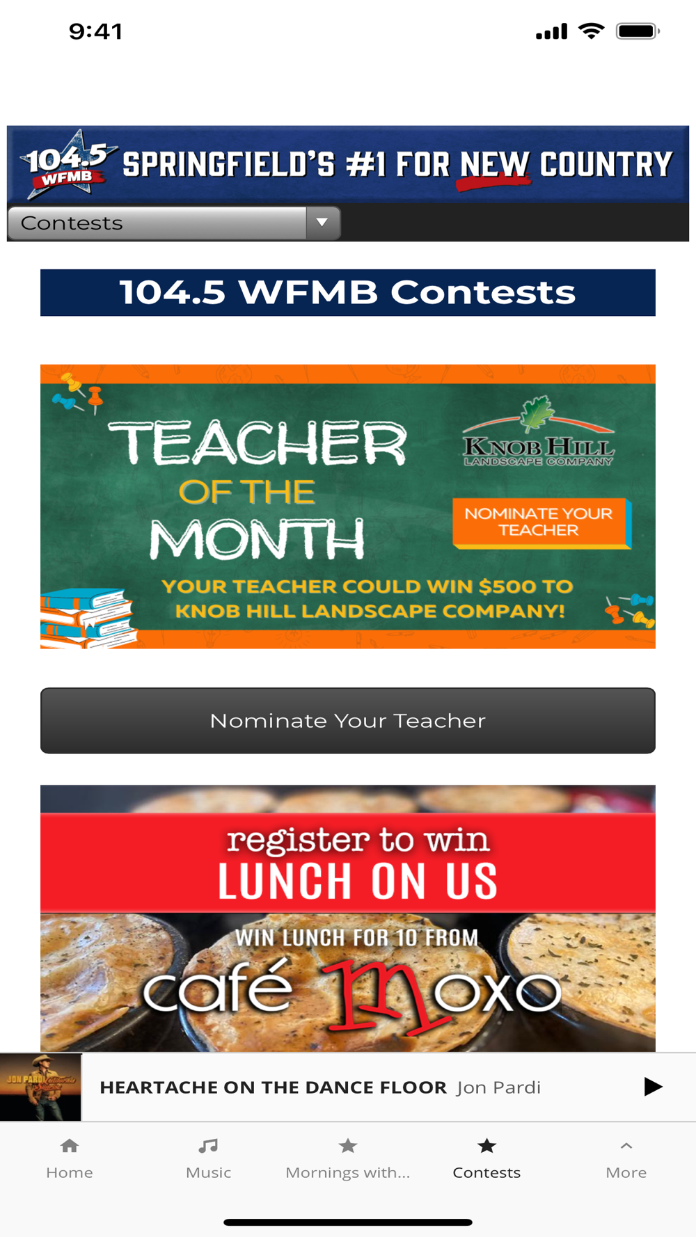 Listen to 104.5 WFMB anytime, anywhere with the app! Enter to win the latest contests and giveaways including app-exclusives, get the latest info on upcoming country concerts, and interact with the air personalities.