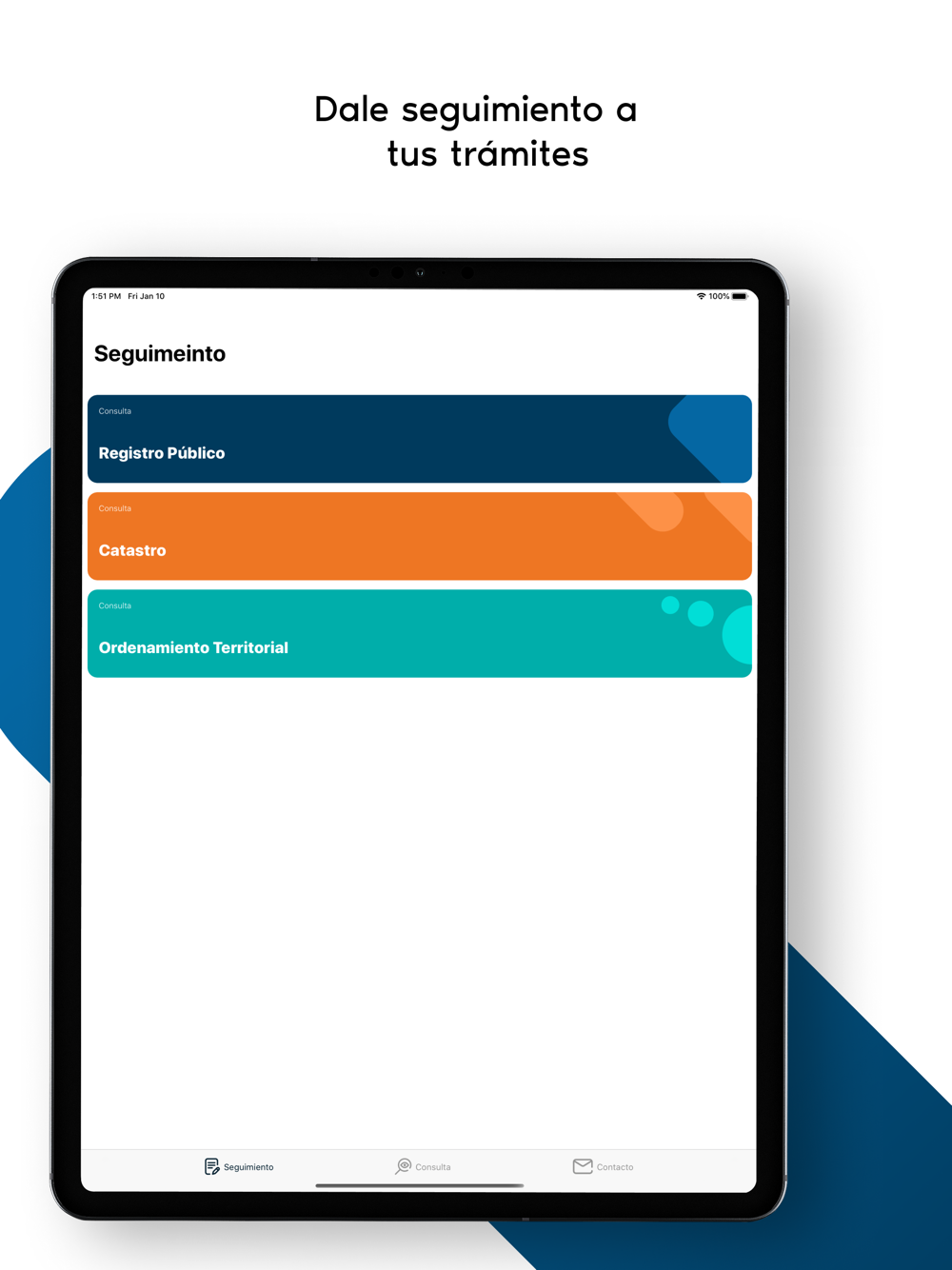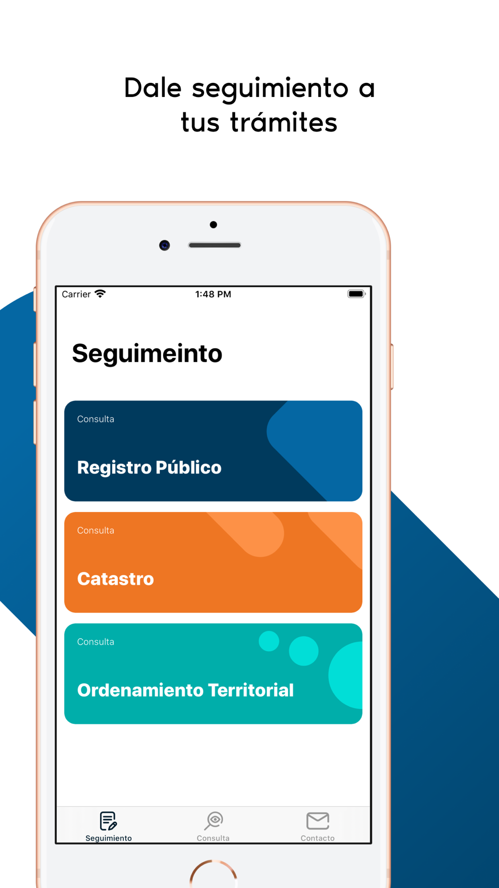 Objetivo: Consultar el estatus del trámite desde cualquier dispositivo móvil. Con esta aplicación no necesitas acudir ni hablar a la oficina del Registro Público de la Propiedad y del Comercio, Ordenamiento Territorial o Catastro, descargando la aplicación podrás saber en tiempo real si ya está listo tu trámite.