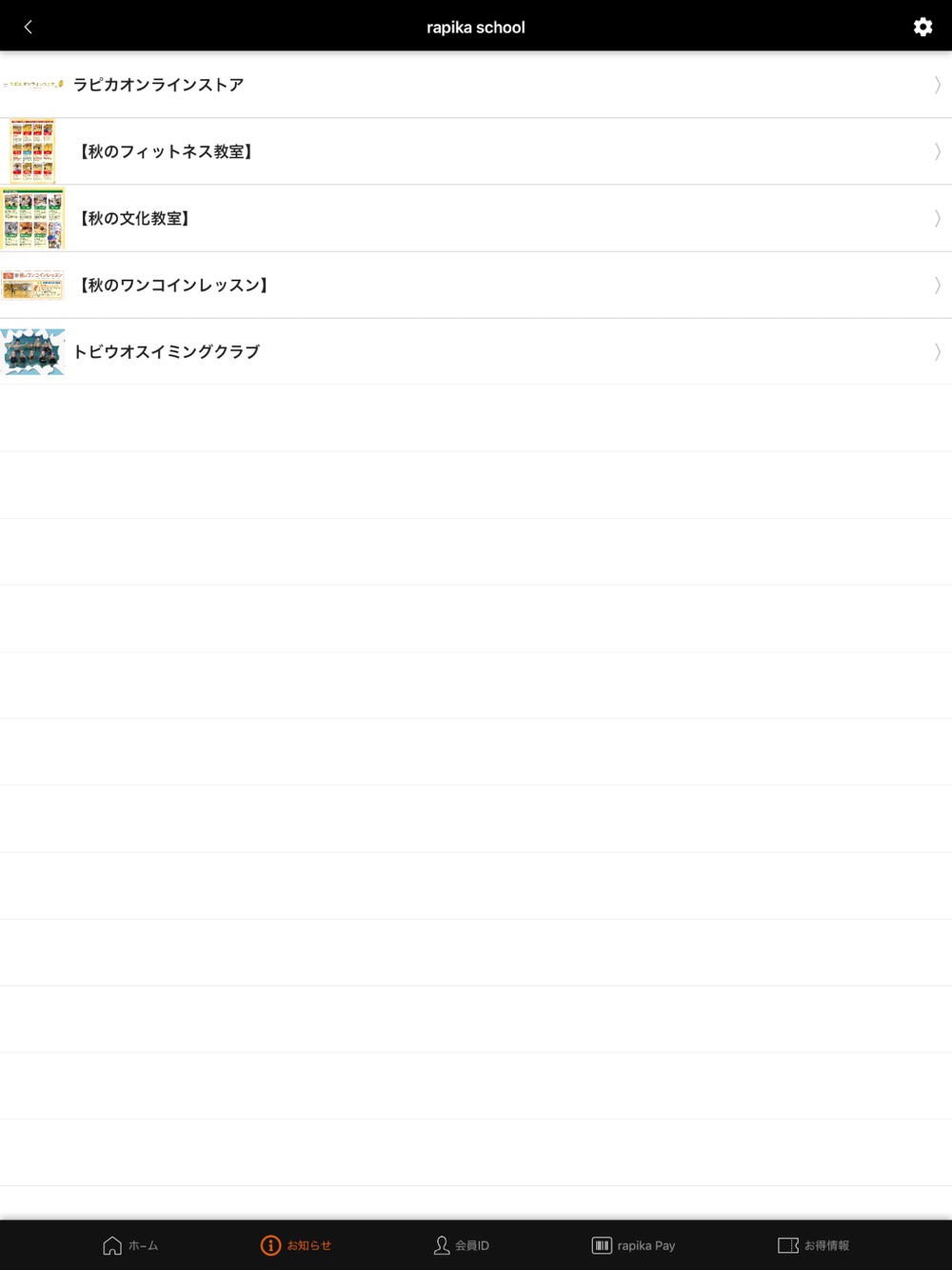 ・イベントやラピカ教室、施設情報などをアプリ内でご覧いただけます