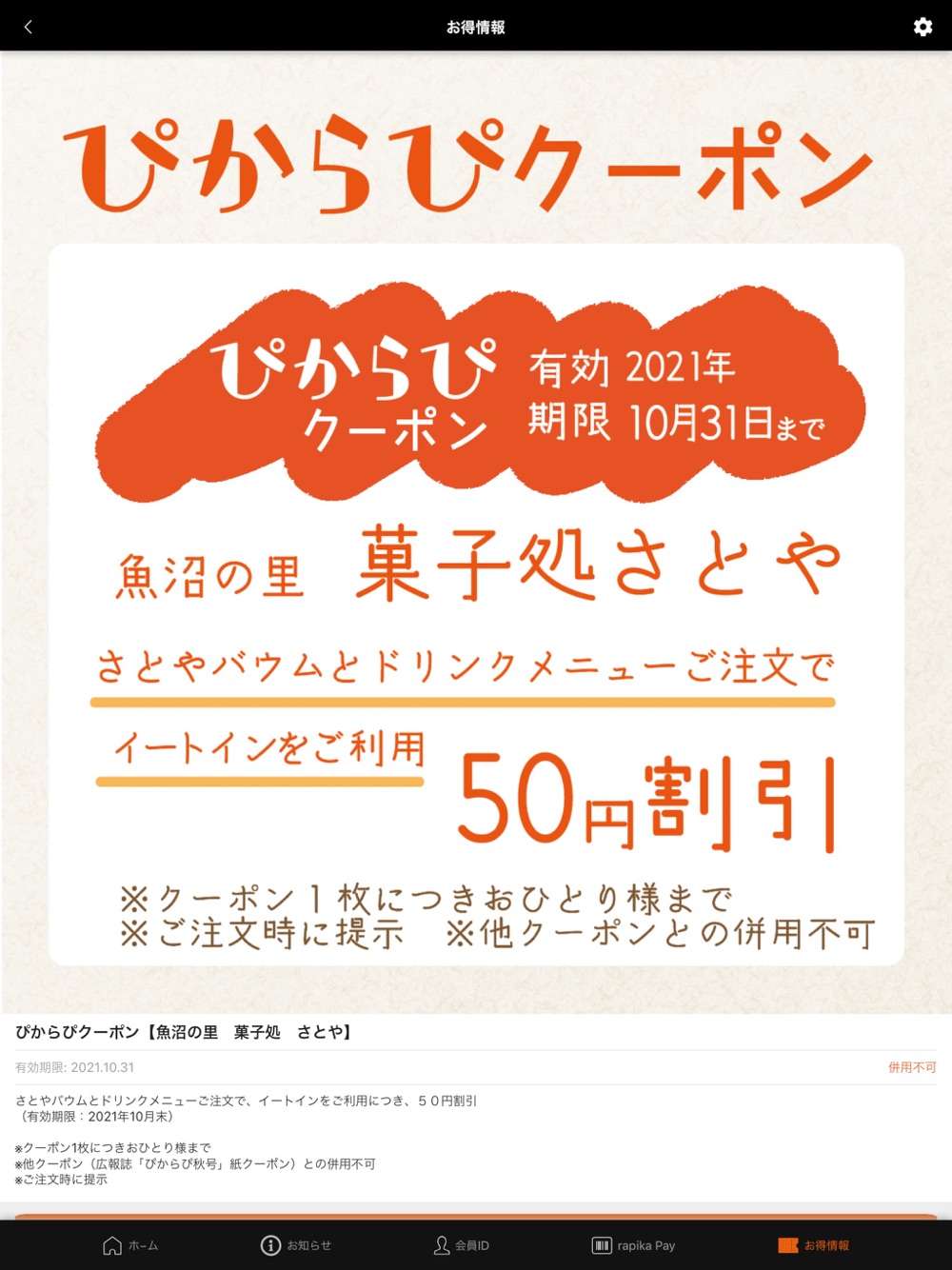 ・rapika Payとしてアプリでお支払いいただけます