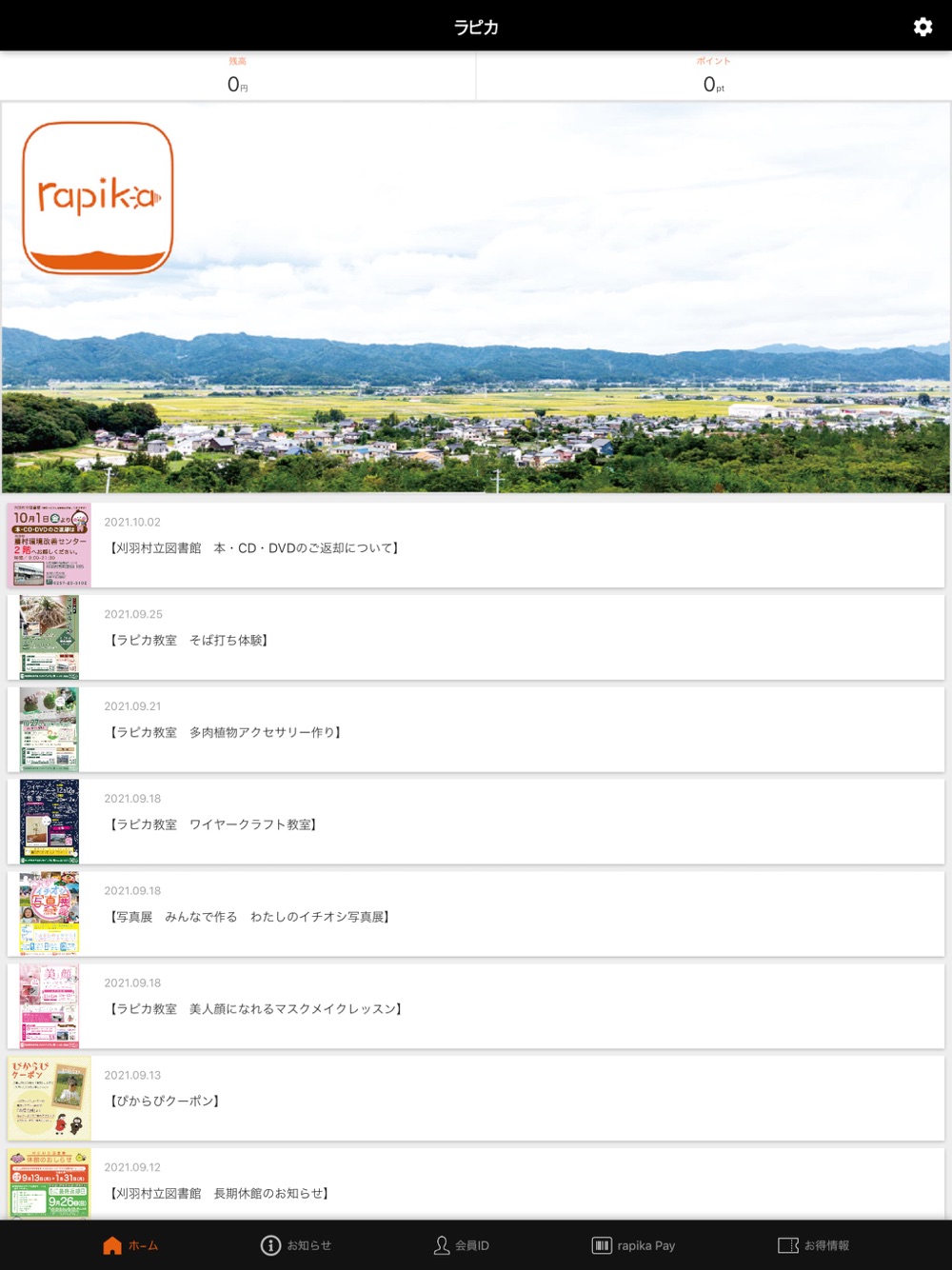 「ラピカアプリ」は新潟県刈羽郡刈羽村生涯学習センター「ラピカ」を便利にご利用いただくためのアプリです。