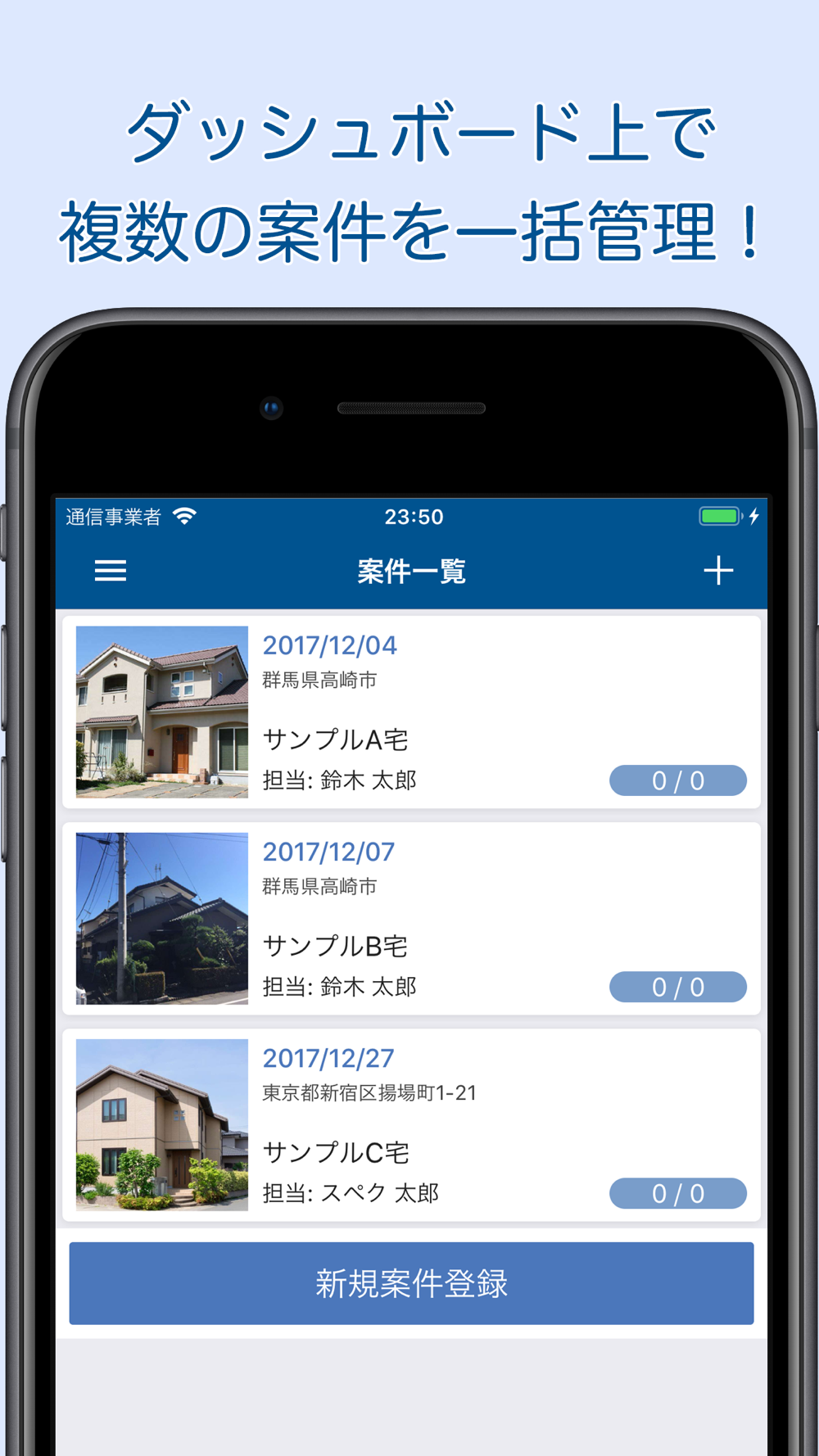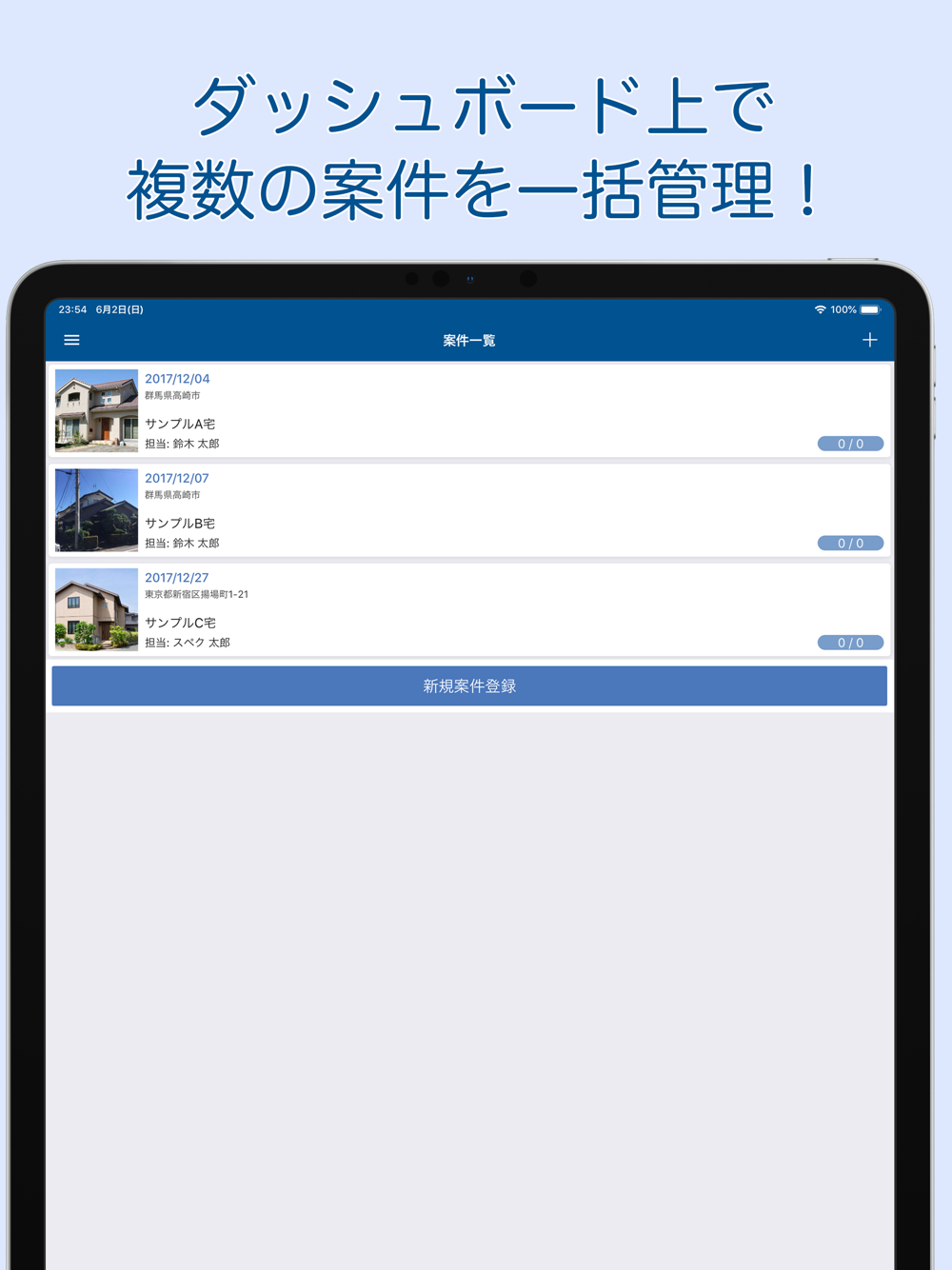 ダッシュボード上で複数の案件を一括管理できます。カレンダー機能もあるので、スケジュールの把握にも便利です。
