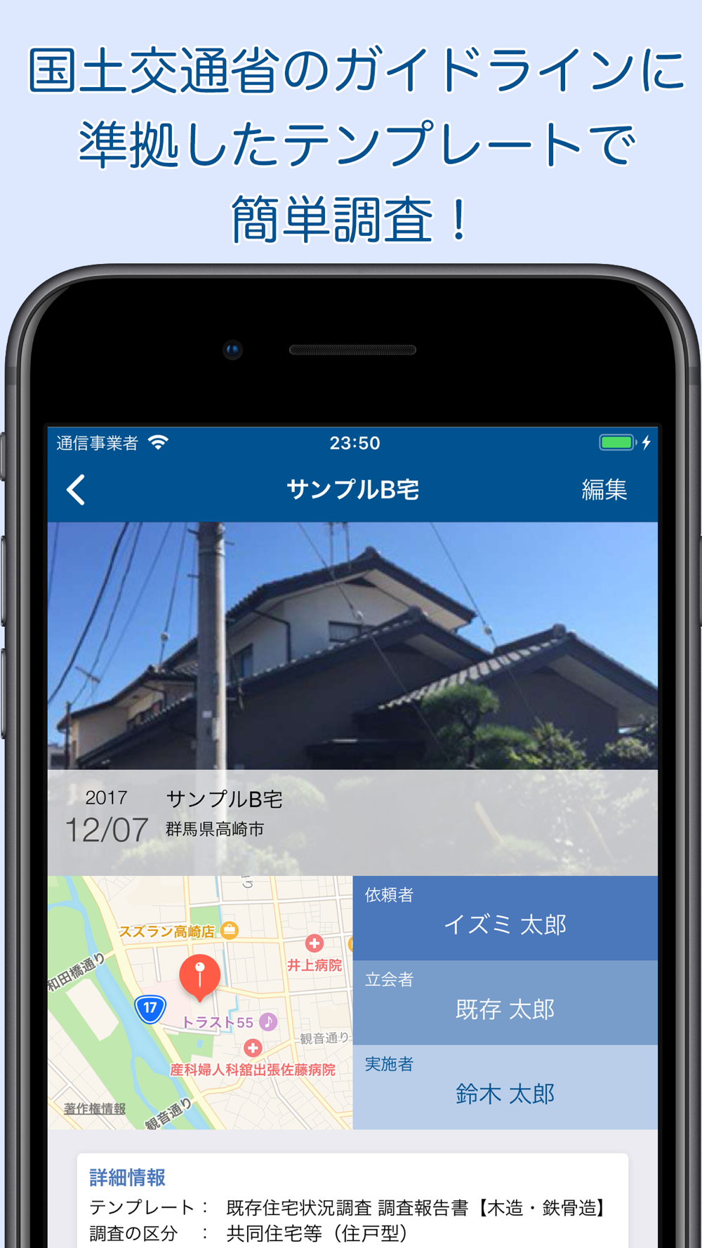 国土交通省のガイドラインに準拠したテンプレートで効率よく家屋調査を行えます。
