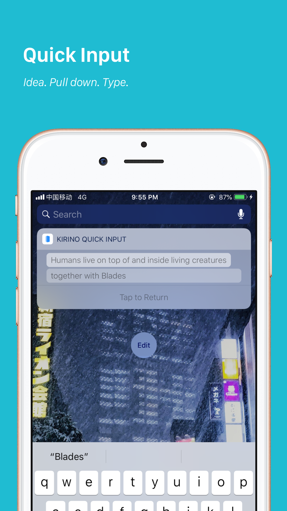 Thoughts is the single best thing life ever invented. The effort behind Kirino is the attempt to making jot down thoughts a happy and quick thing.
