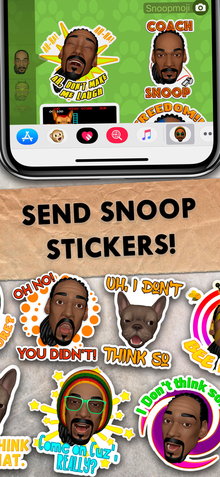 Record your face as Snoop & Friends and send animated emojis to your contacts directly through iMessage. Download now!