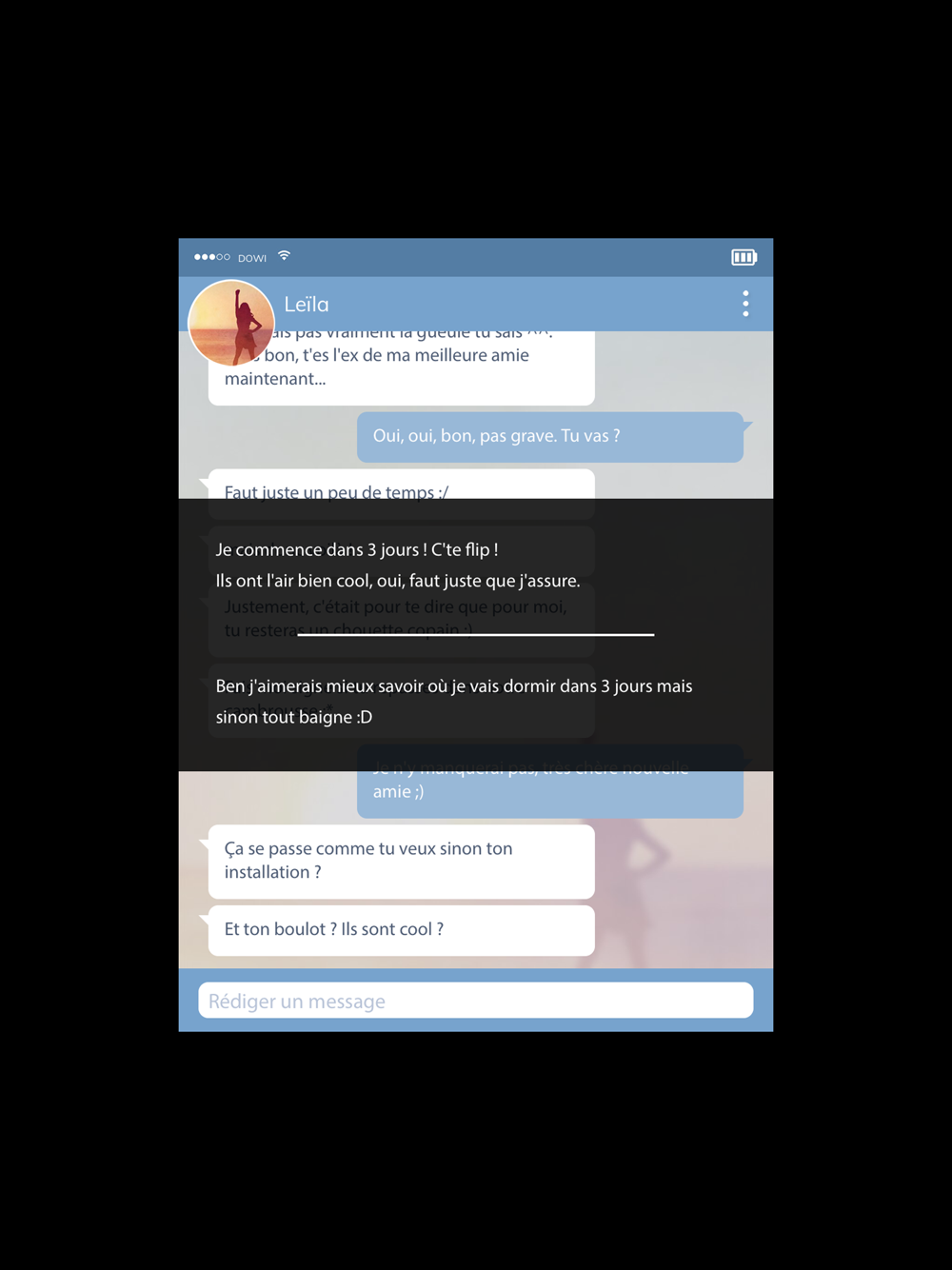Farid doit maintenant très rapidement trouver un logement sur son nouveau lieu de travail qui débute dans cinq jours. Il postule à une colocation.