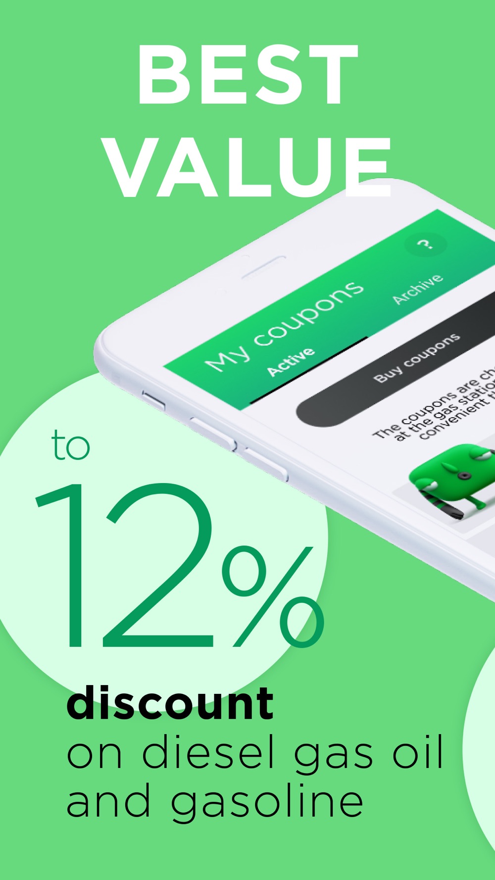 Let's buy bargain price fuel and get highest discount till 12%! Tank up, expand application and with friends and get your money on the referral program.