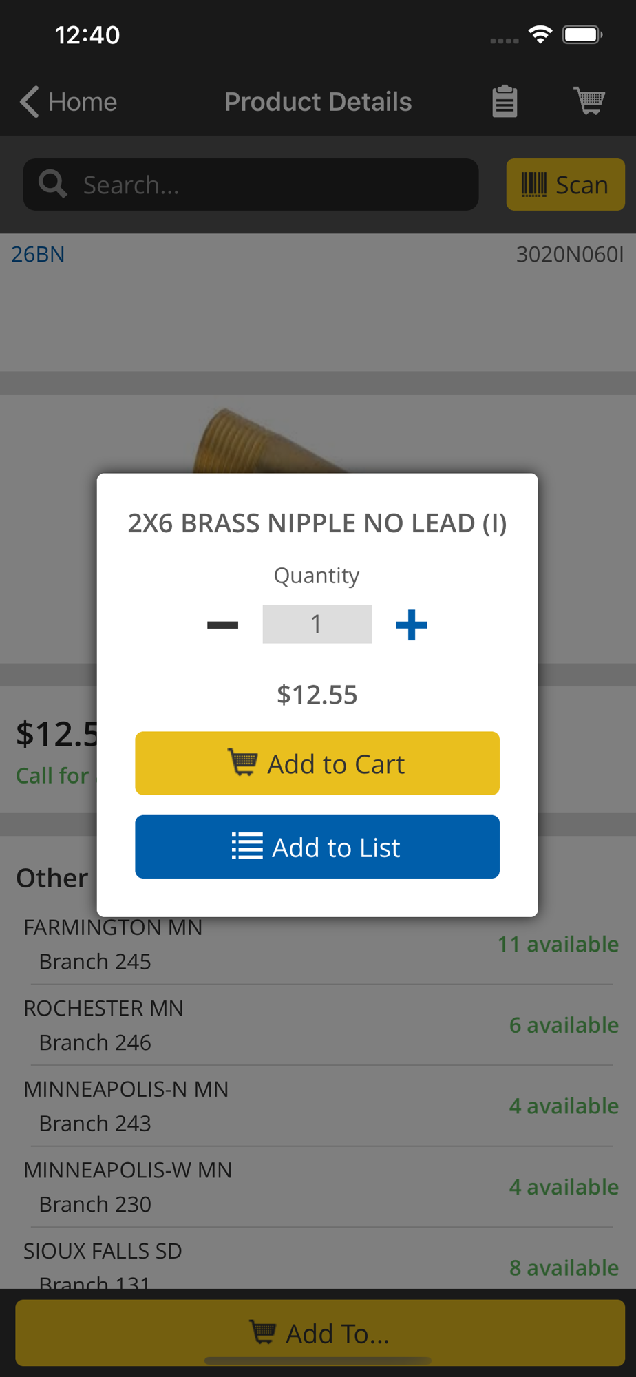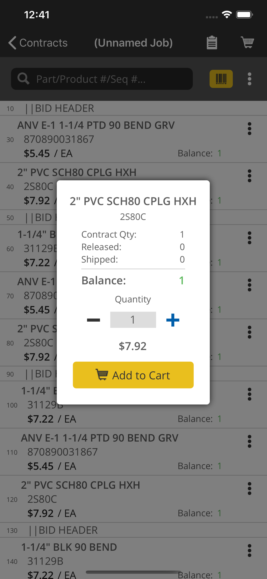 Easily place orders and restock inventory. Simply scan a product bar code or QR code and add a quantity. Build your list of part numbers and either export for offline use or order online with your Online Advantage account.