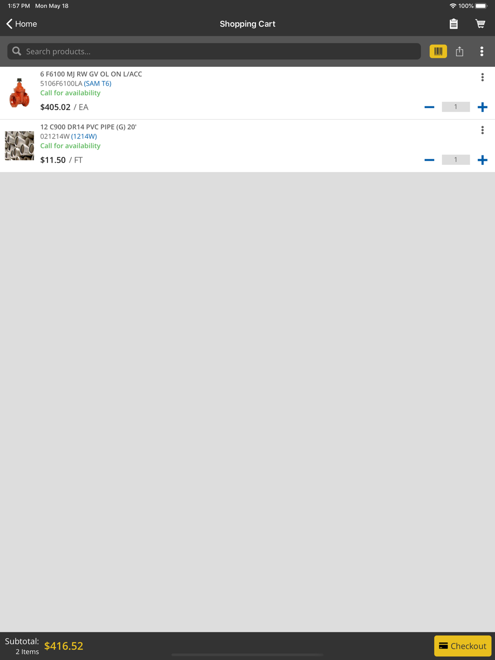 Sign in with Online Advantage to access saved lists and carts that sync between Mobile Advantage and your Online Advantage account. See pricing and complete orders from right inside the app. Our simple checkout ensures the content of your cart will be sent directly to your local Core & Main branch for pickup or delivery.