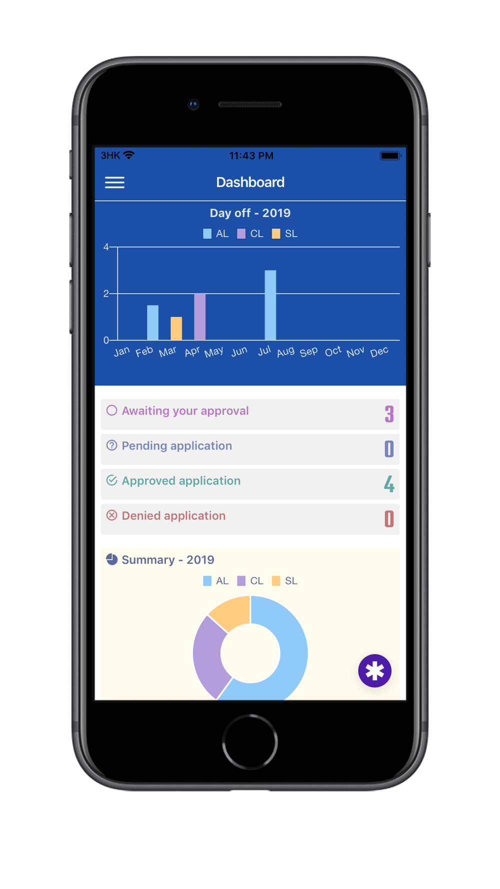 - receive notification (email and push notification) when members apply day off (and if they choose to notify you);