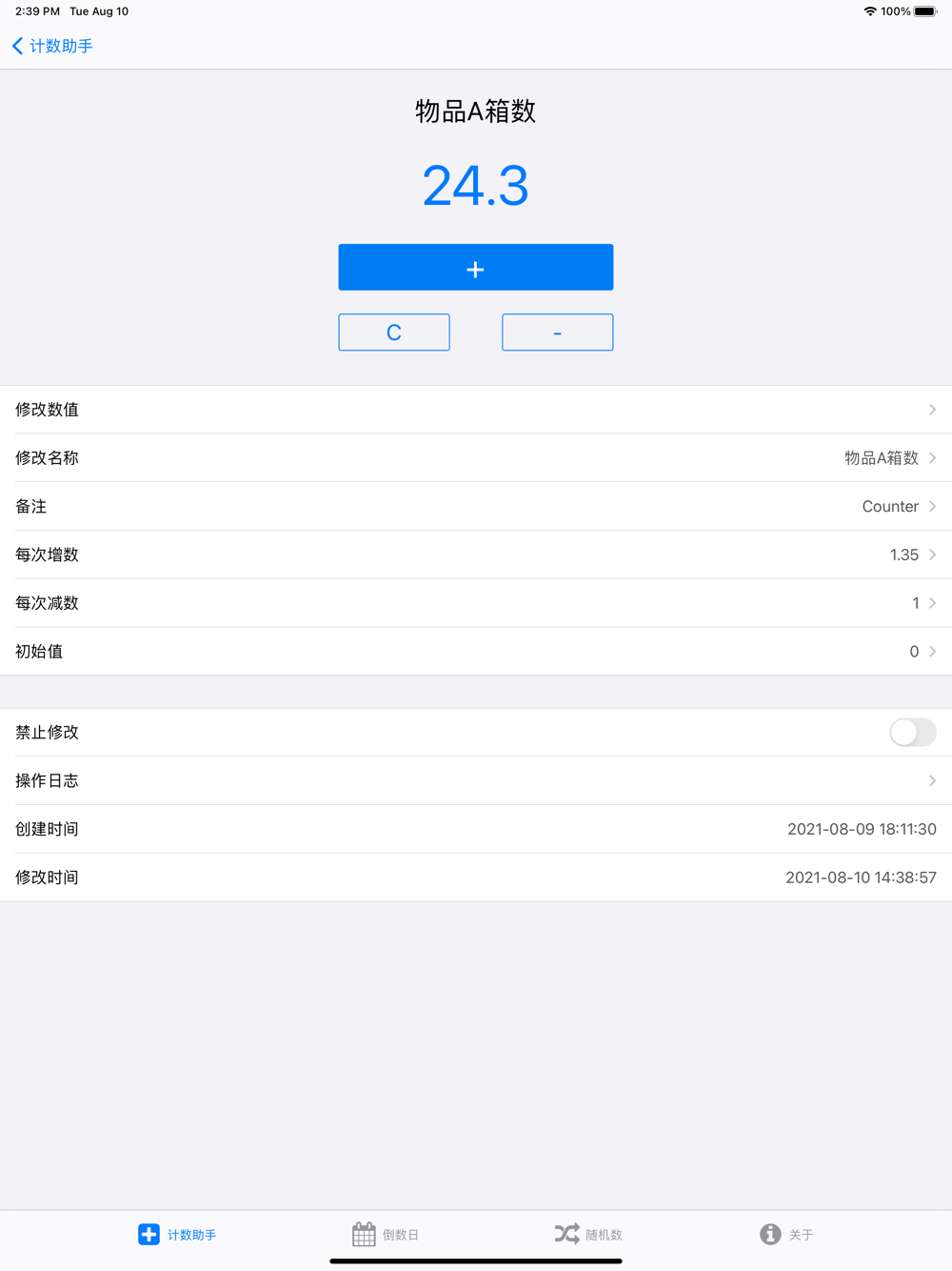 - 可设置禁止修改计数器,避免误操作。
