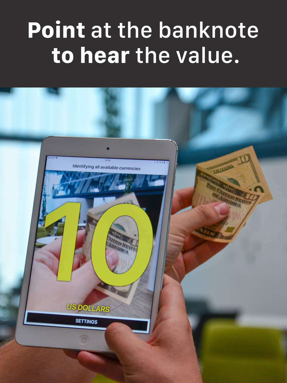 Simply point your camera at any banknote from over a hundred currencies and hear the value instantly.