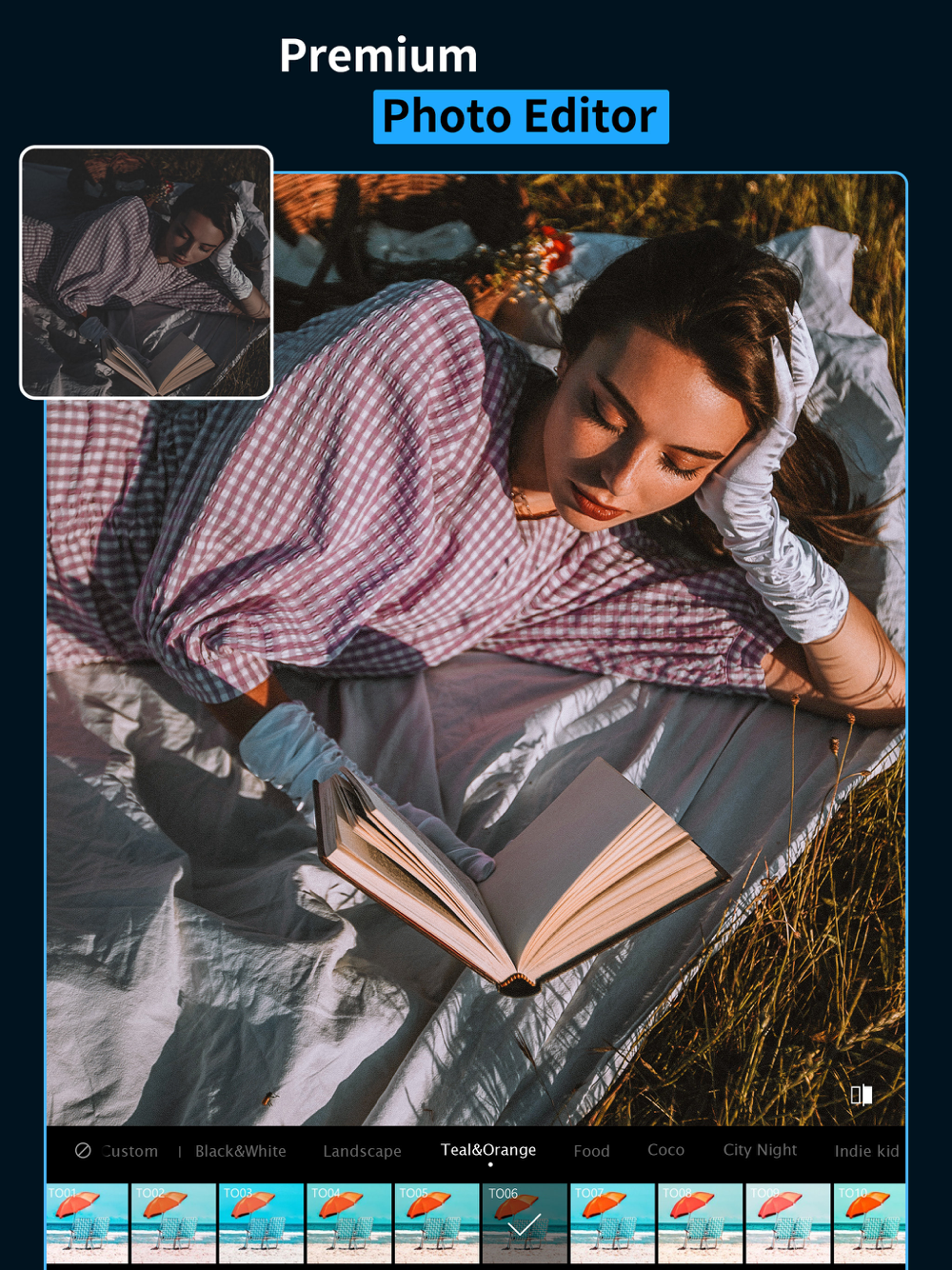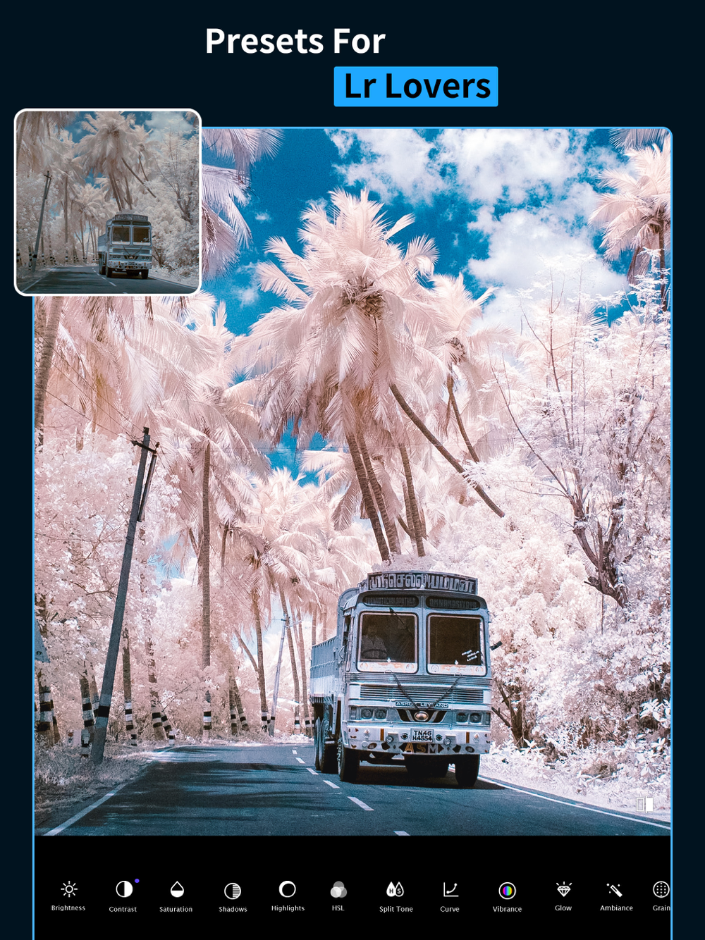 800+ filters designed and selected by professional designers and photographers, we provide preset packages with rich themes, such as retro, movie, vintage, ins style, old school camera, Japanese, fresh, foodie, holiday, light leak, blur, black and white, gourmet, Movie, Autumn, Wedding, Portrait, Cyberpunk, etc. Wonderful preset styles for Instagram!