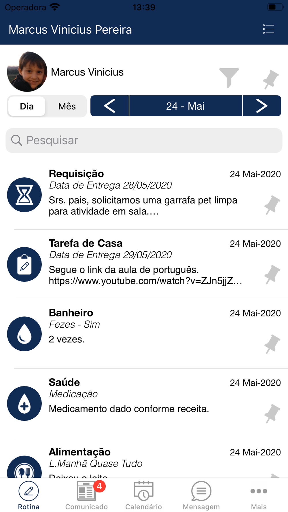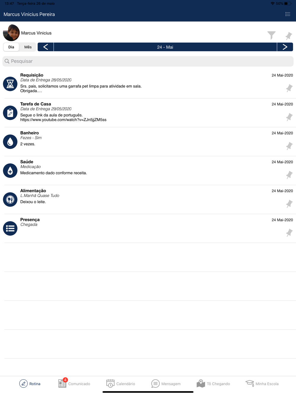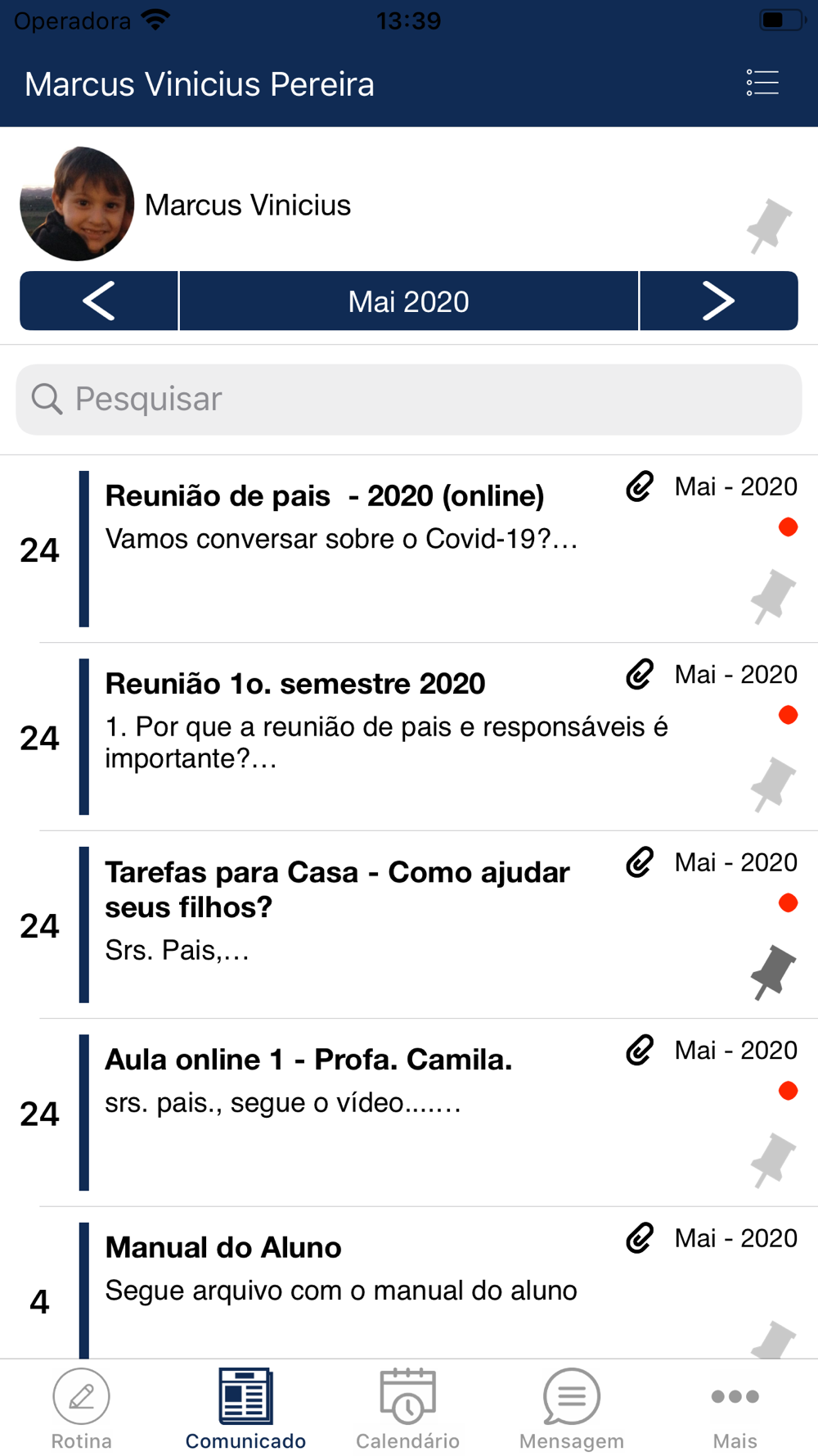 Leia Recados e Comunicados;