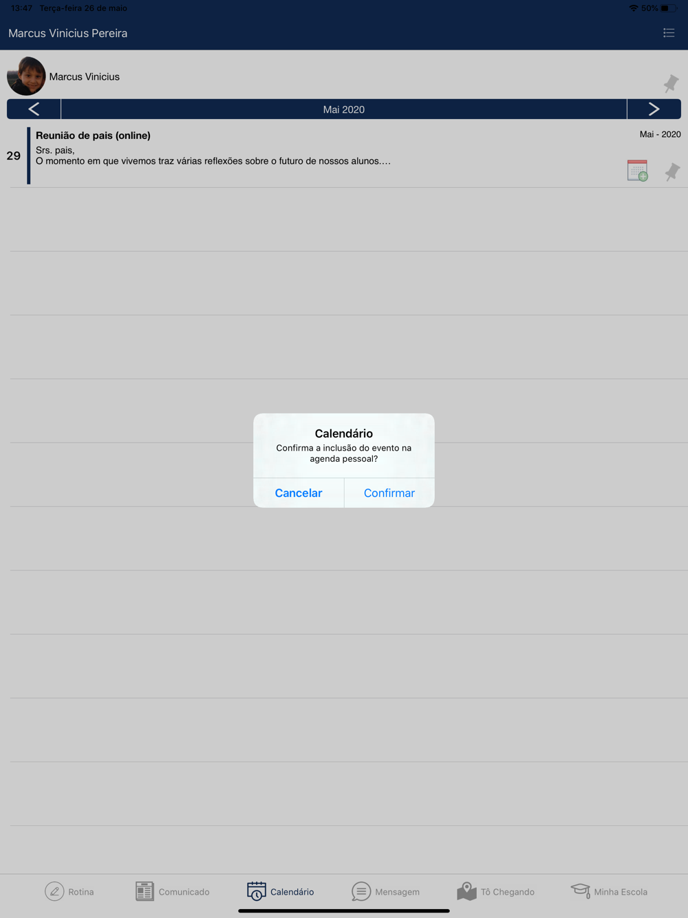 Receba alertas sobre datas e eventos escolares.