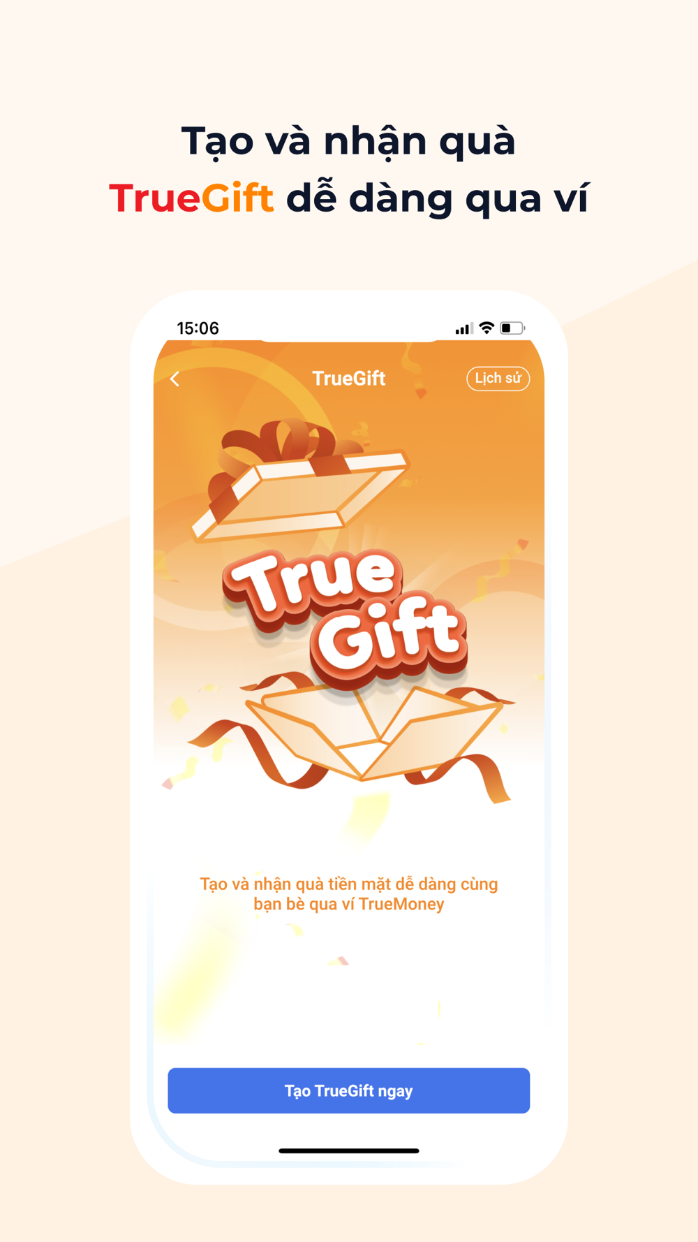 Với TrueMoney, bạn có thể nhanh chóng thanh toán các tiện ích hằng ngày như: nạp tiền điện thoại, thanh toán hóa đơn điện, hóa đơn nước, mua thẻ game, thanh toán cước phí đi xe... Đặc biệt, TrueMoney còn cung cấp những sản phẩm tài chính linh hoạt và đa dạng với quy trình phê duyệt trực tuyến nhanh chóng.