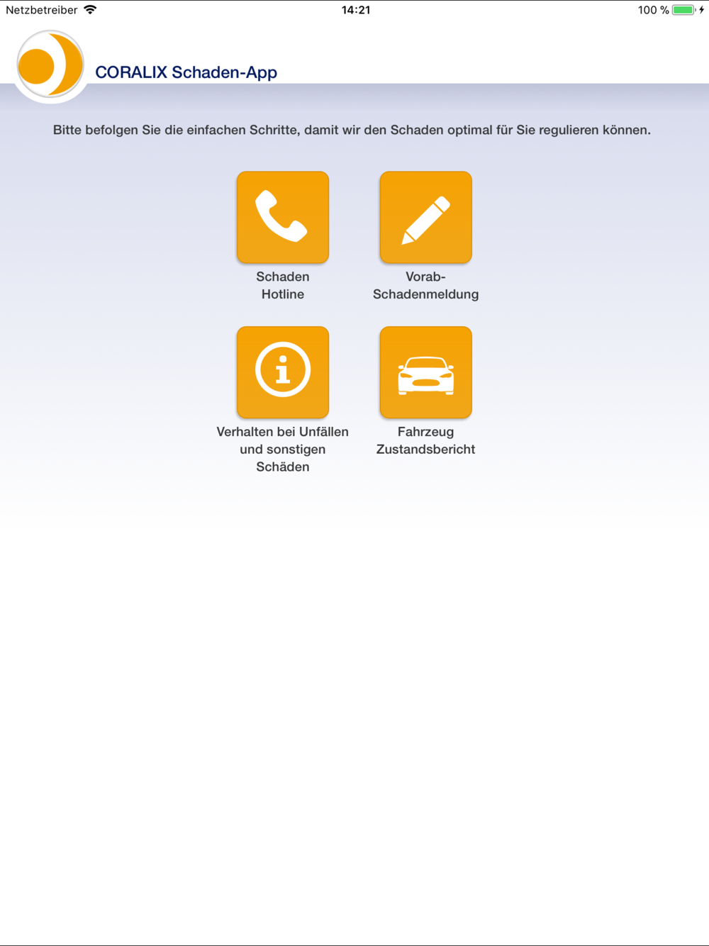 Diese App ist der Einstieg in Ihr professionelles Schaden-Management. CORALIX Fleet Solutions hat sich auf die professionelle Schadenabwicklung für Firmenkunden spezialisiert. Aktives Schaden Management bedeutet für uns die Übernahme der Prozess-Steuerung des Schadens ab Unfallort. Wir steuern aktiv die Schadenabwicklung, begleiten den Reparaturprozeß und wir übernehmen für Sie die gesamte Kommunikation mit allen Unfallbeteilligten - inkl. Fahrerbetreuung.
