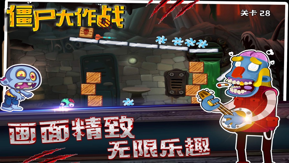 这是一个类似愤怒的小鸟的解密闯关物理游戏,你需要巧妙的运用炸弹等各种有趣道具干掉僵尸!