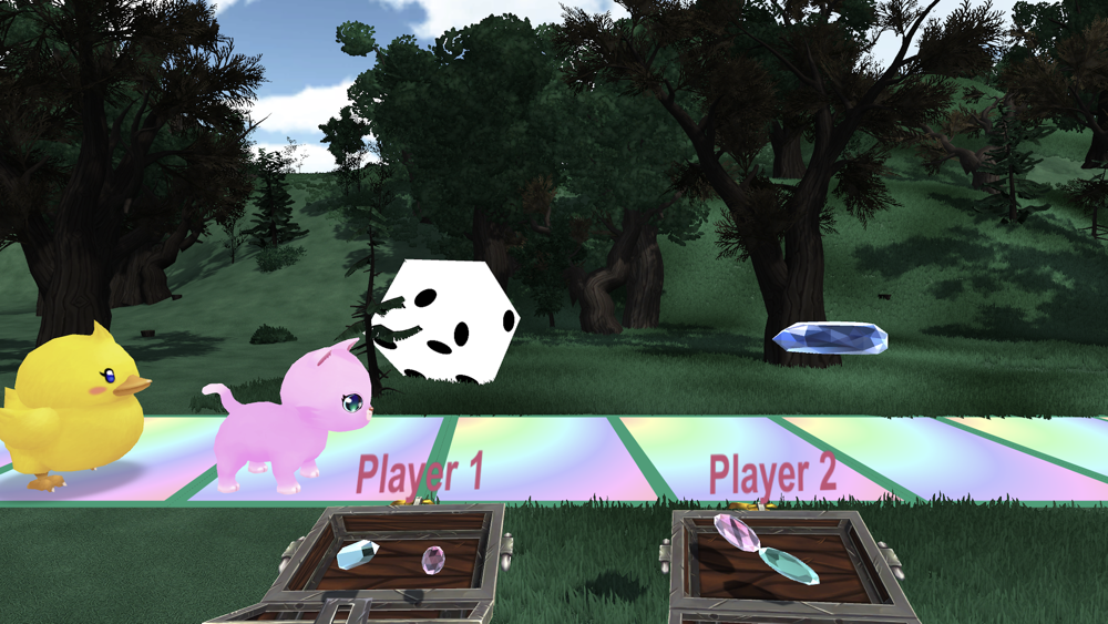 Play this digital board game just like a regular board game! Roll the dice and then pick up your cute pet that you choose and move it the number of spaces the dice shows. If you get on a spot with a jewel, you get to put I in your treasure box. The player with the most jewels at the end wins!