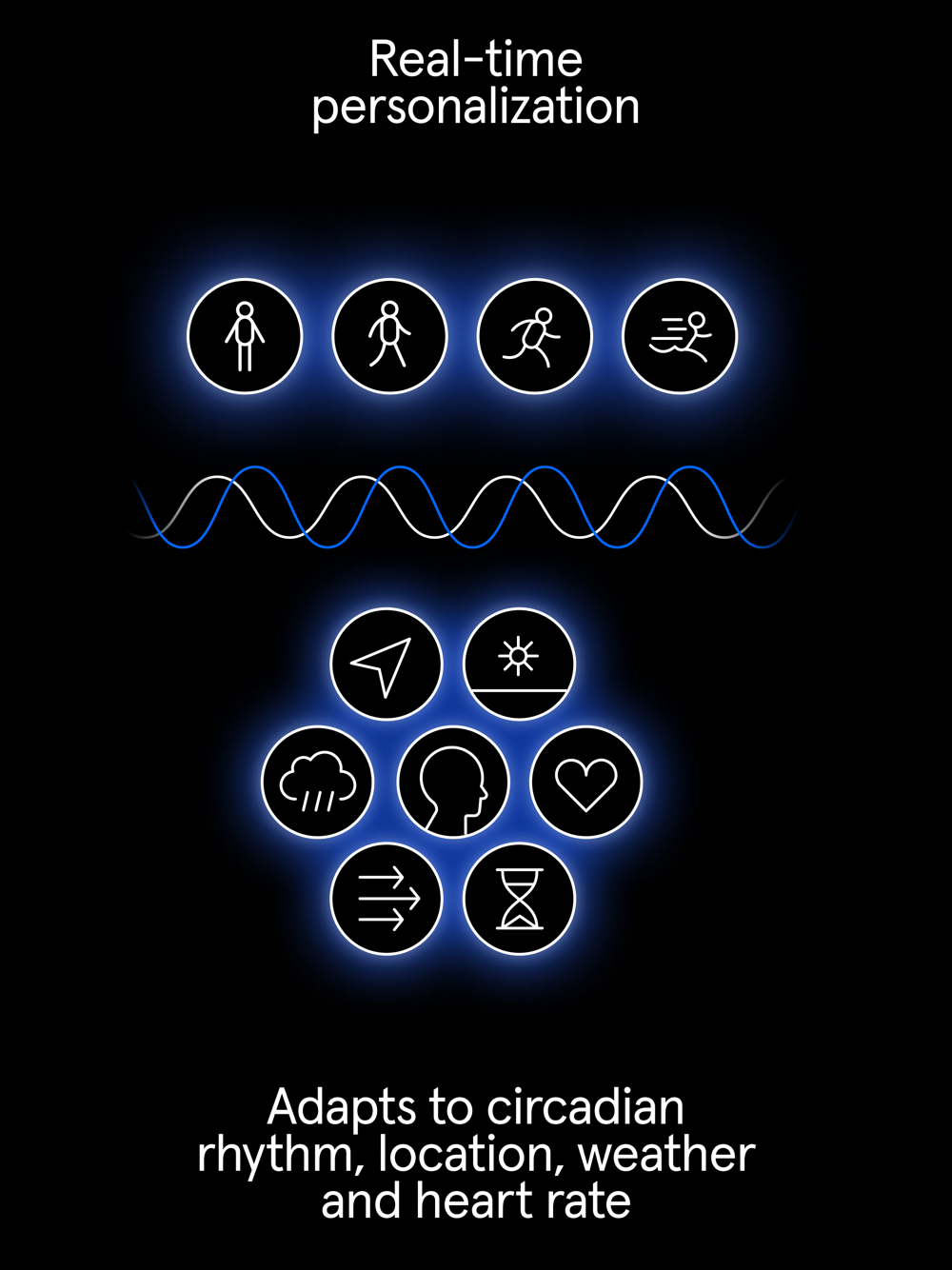 Endel is powered by its patented core AI technology. It takes inputs like location, environment, and heart rate, to create the optimal personalized soundscape. This happens on the fly and allows Endel to reconnect your state with your circadian rhythm