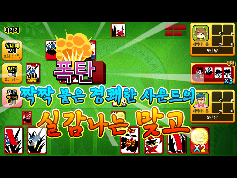 무료로 주는 아이템을 이용해 복잡하게 생각하지 않아도 되며 초보자도 쉽게 맞고를 칠 수 있습니다.