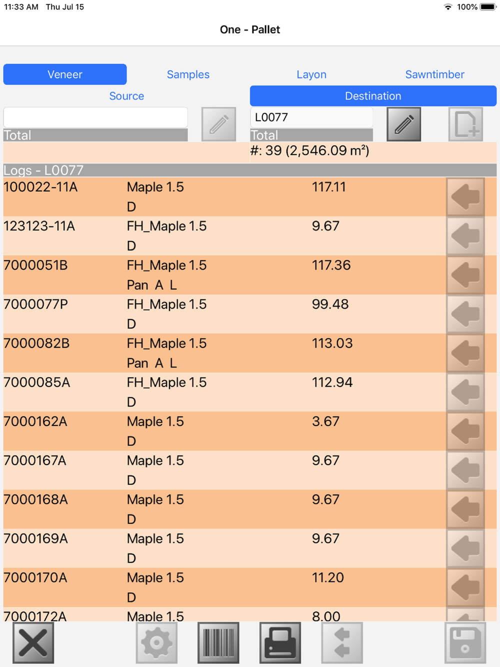 The App is for the administration of Veneer Pallets, Sample Trays, Layon Pallets and Sawn Timber Hubs. Input weight, length, height and width using either the metric or imperial measurement system.Add a comment if desired, press save and the pallet details will be updated in your TIMBERplus system.