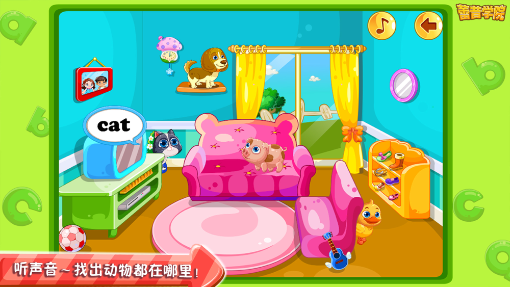 2.根据英文的提示,找到正确的小动物,培养宝宝的听力,观察力