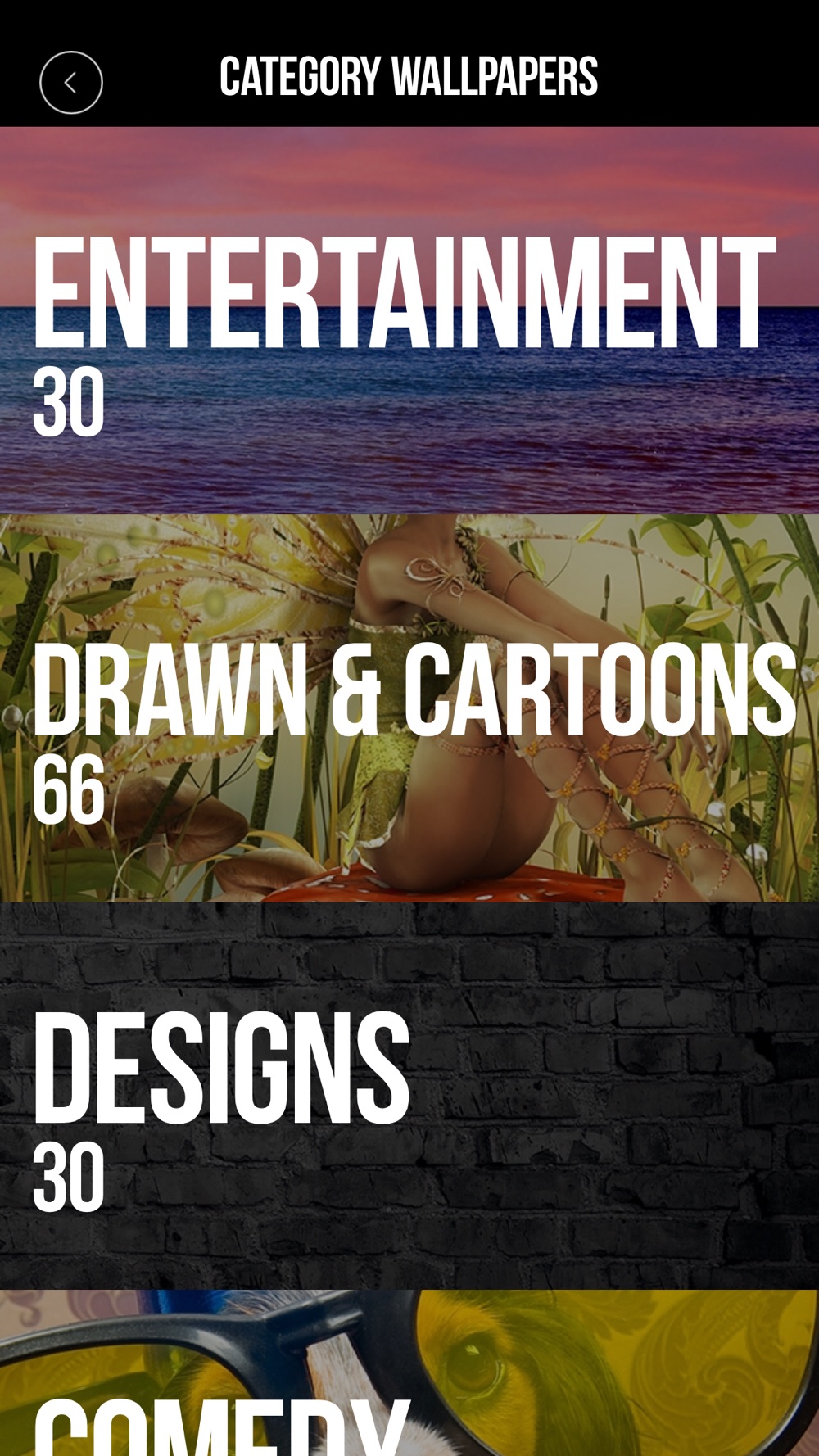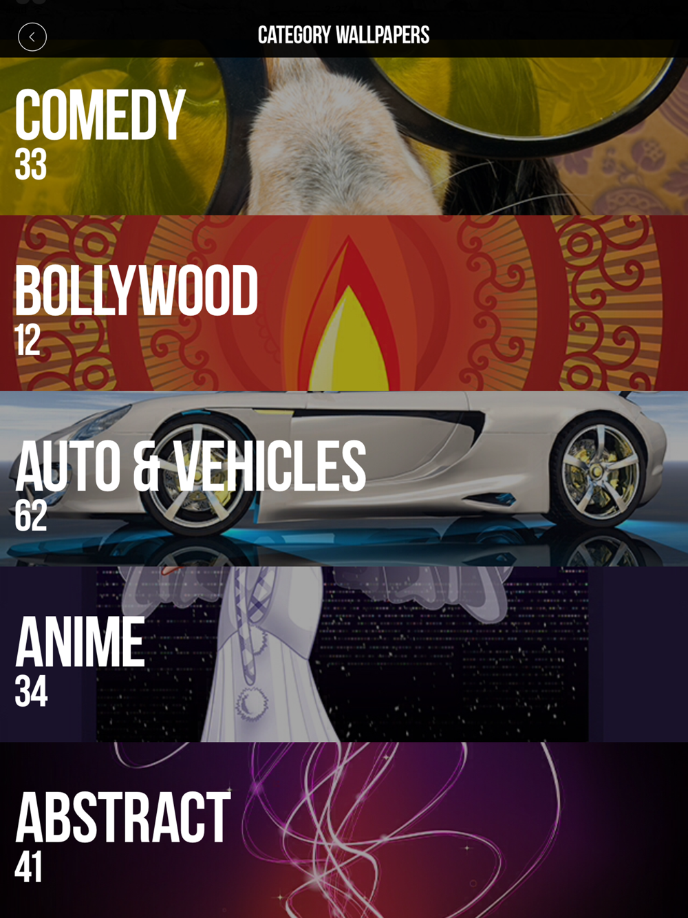 - A lot of categories including abstract, anime, landscape and nature, animals, love wallpapers and more