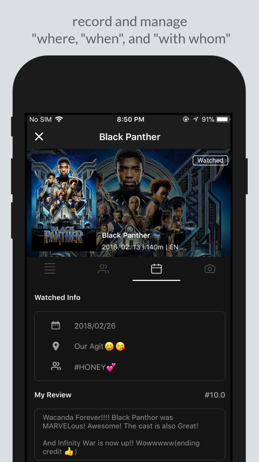 When you register your movies, record and manage "where", "when", and "with whom" you watched them.