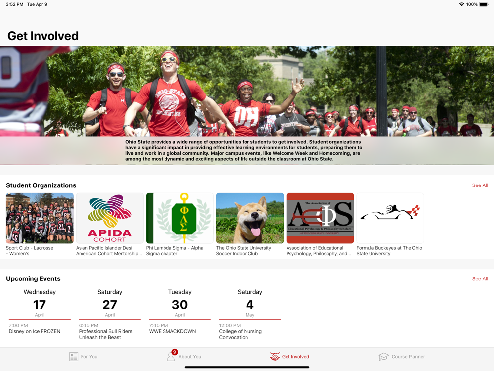 Discover what's going on at Ohio State! This app is the best way to get important information from Ohio State, for you! Access your schedule, grades, account balances, and more. Find ways to get involved and plan out your academic career. It’s free! Download it now!