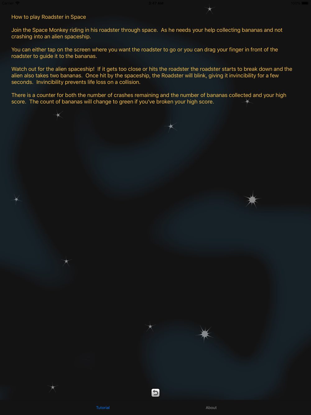 Join the Space Monkey riding in his roadster through space. As he needs your help collecting bananas and not crashing into an alien spaceship.