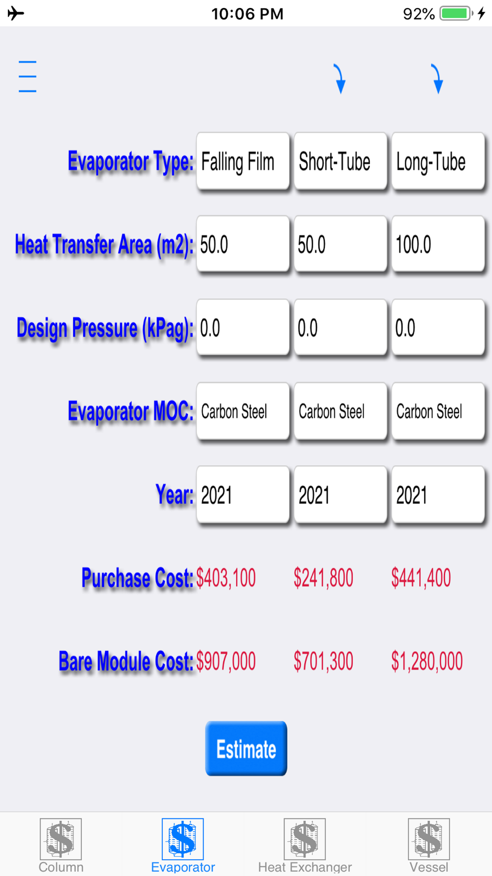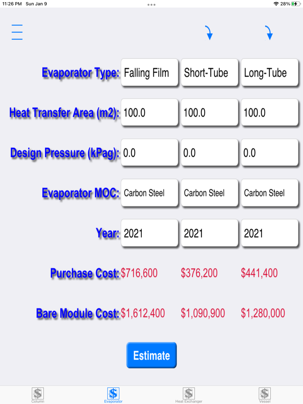 • This software evaluates the Purchased Cost and the Bare Module Cost for any process equipment in any given year from 1957 to present.