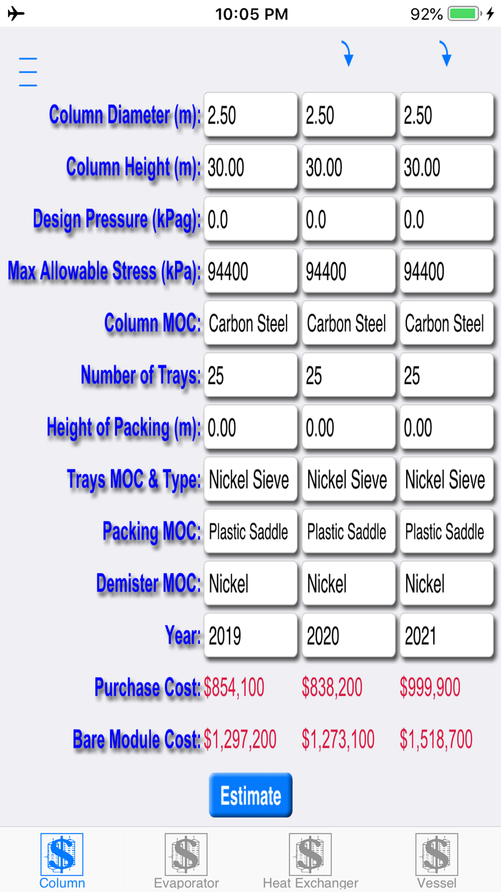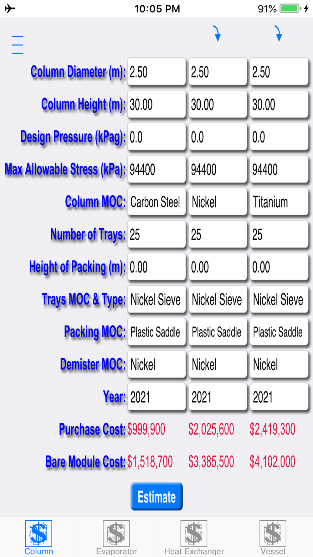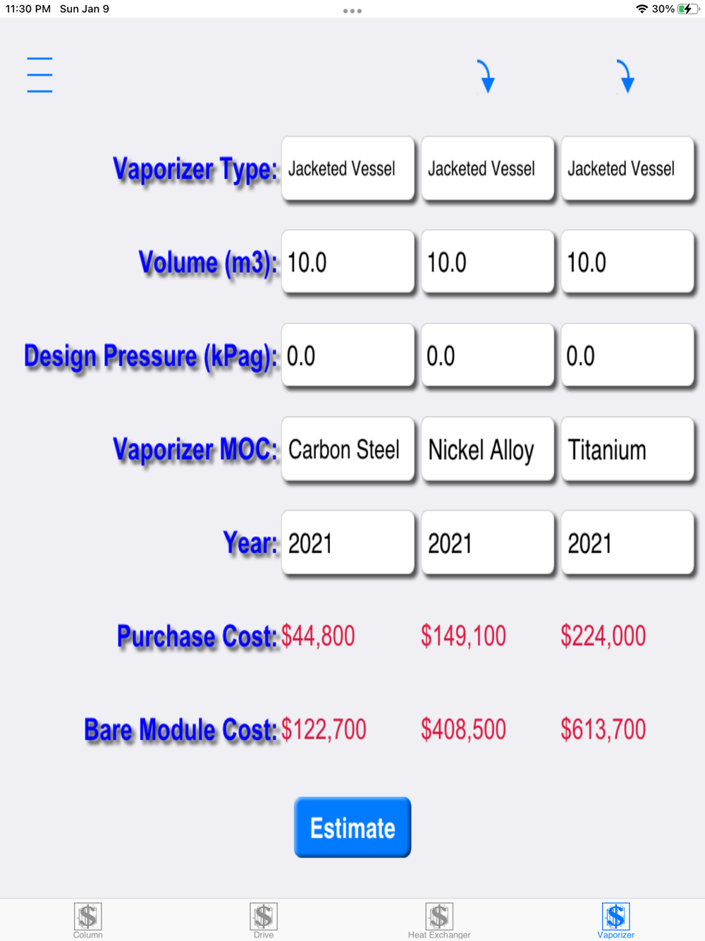 • The calculation core is adopted from Turton et al. (2018) who reviewed and updated the modular technique and cost data proposed by Guthrie (1974) and Ulrich (1984).