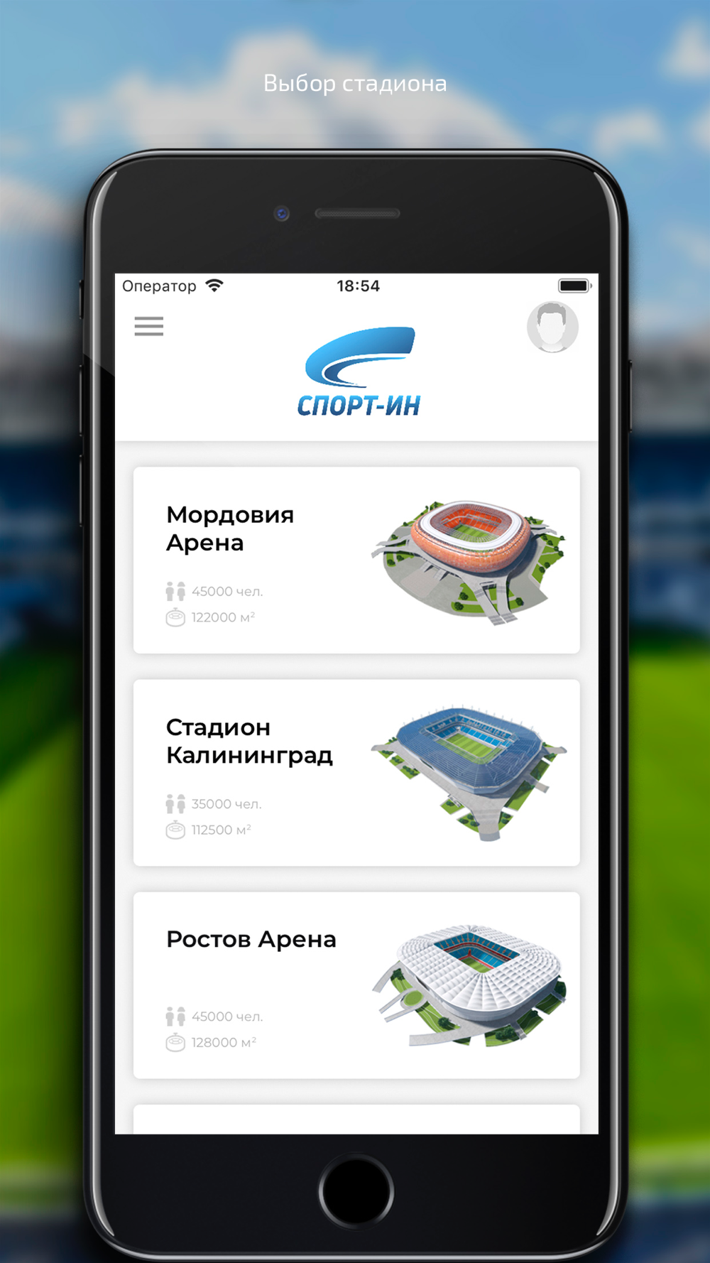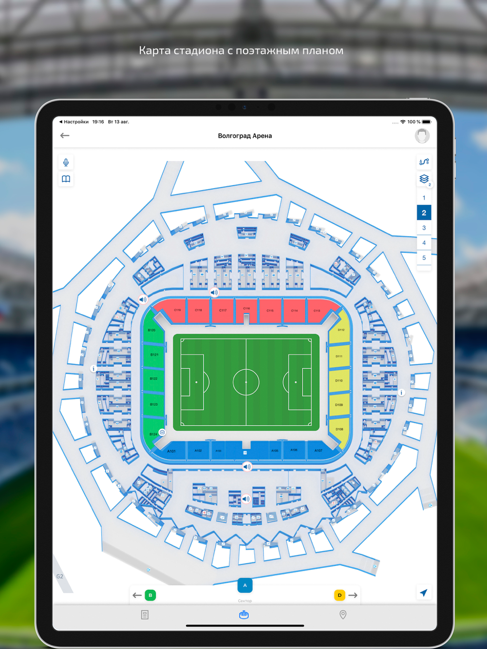 В приложение присутствуют стадионы городов: Калининград, Волгоград,