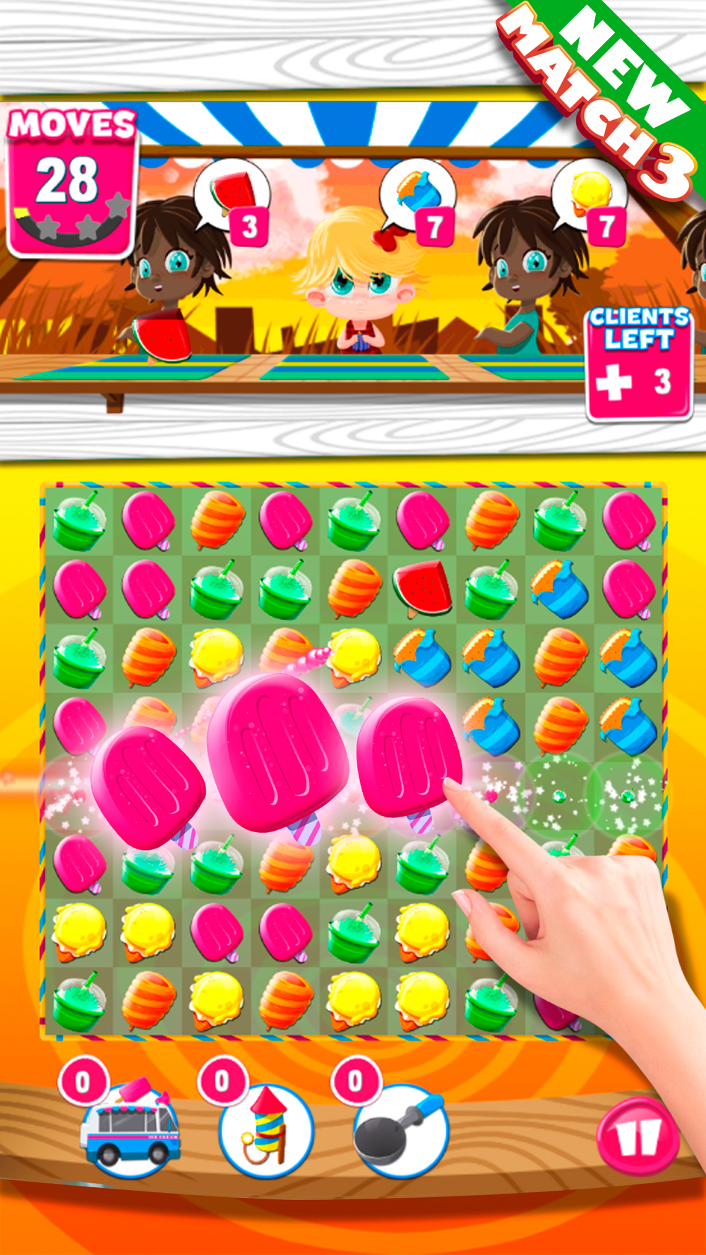 - Fast paced classic ice cream match 3 game