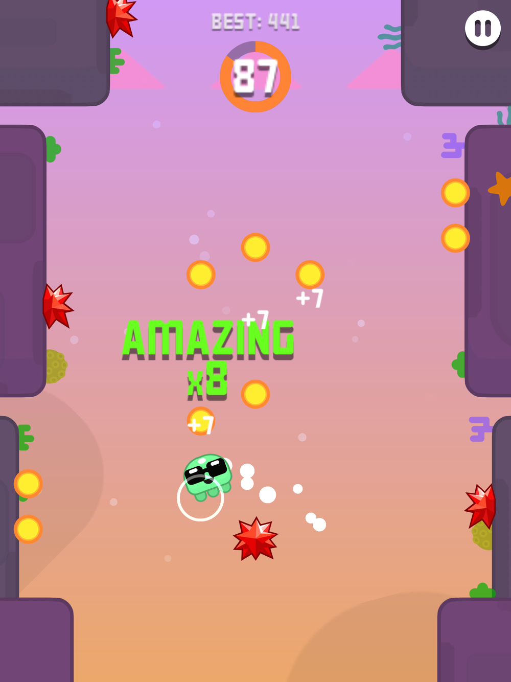 Jelly your way up through the fun course, collect coins and if you are good enough, get multiplications of coins. Avoid obstacles, hit fish, and get into frenzy mode to take on spikes