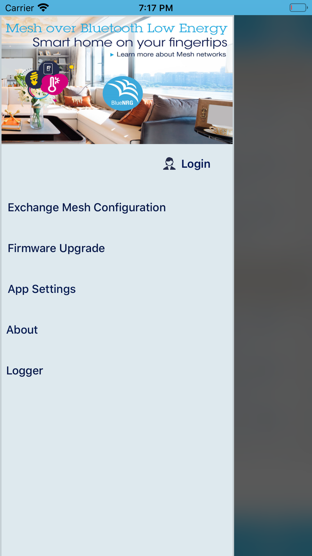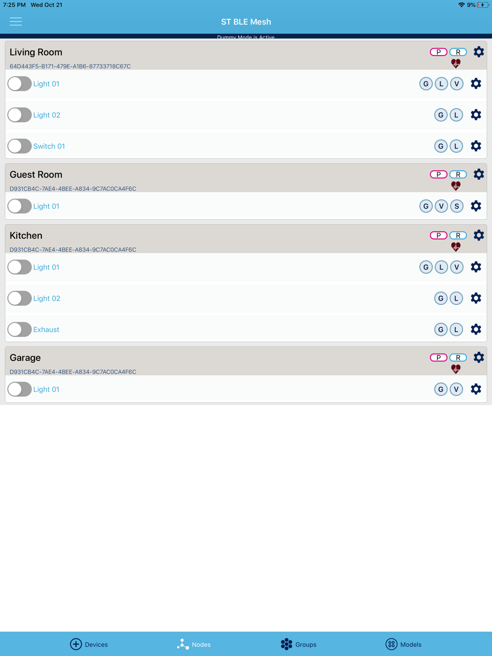 The app is an ideal companion for the BlueNRG-Mesh firmware solution for the BlueNRG-1/2/LP/LPS or STM32WB evaluation boards. It is compatible with any device adhering to the Bluetooth® Mesh Profile 1.0.1 standard.