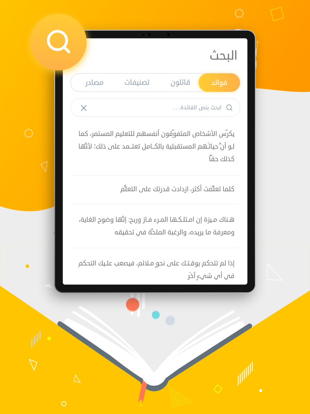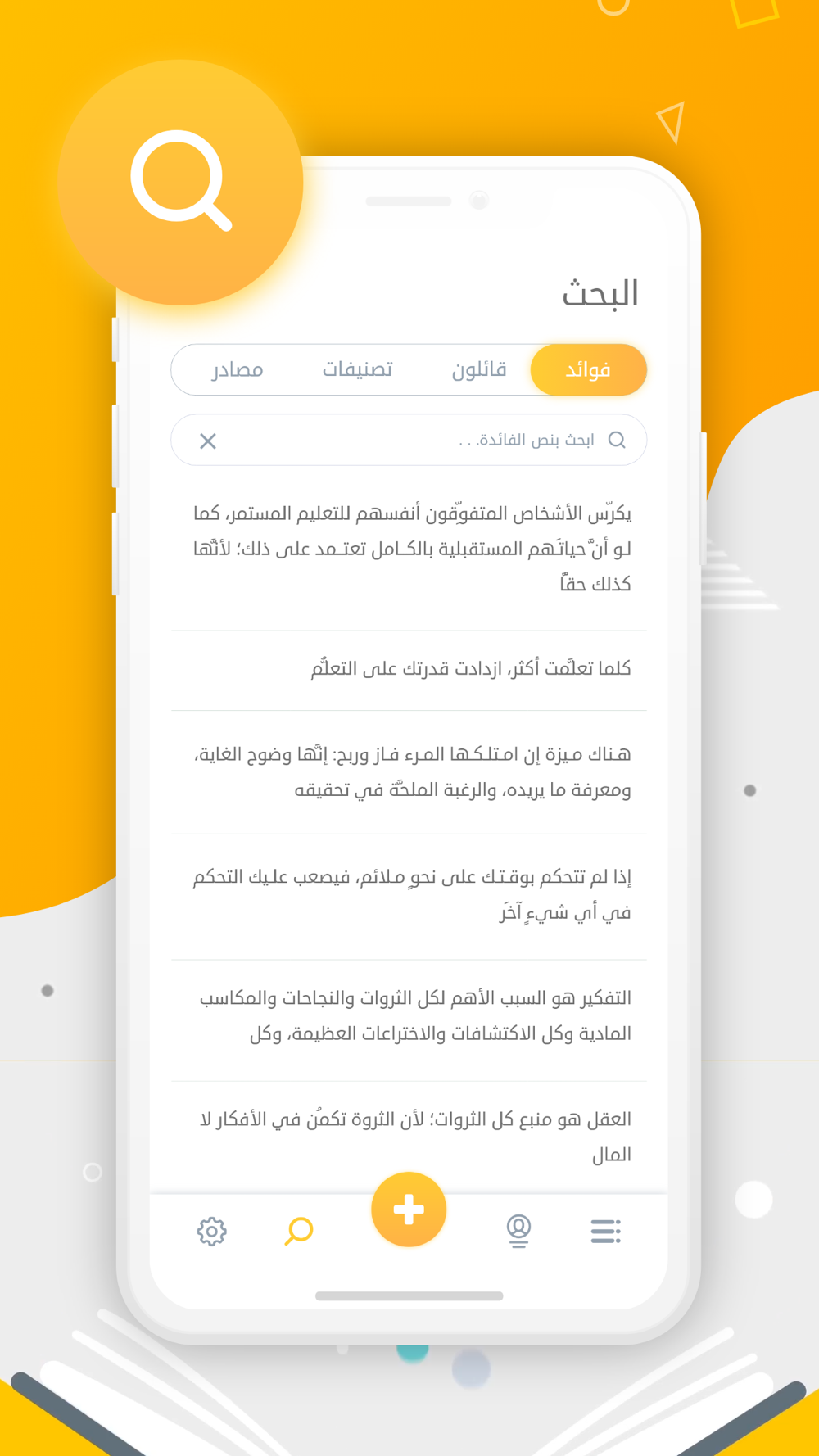 * (محرك بحث متقدم) يبحث في نصوص الفوائد، والتصنيفات، والقائلين، مع تجاهله للأخطاء الإملائية الشائعة.