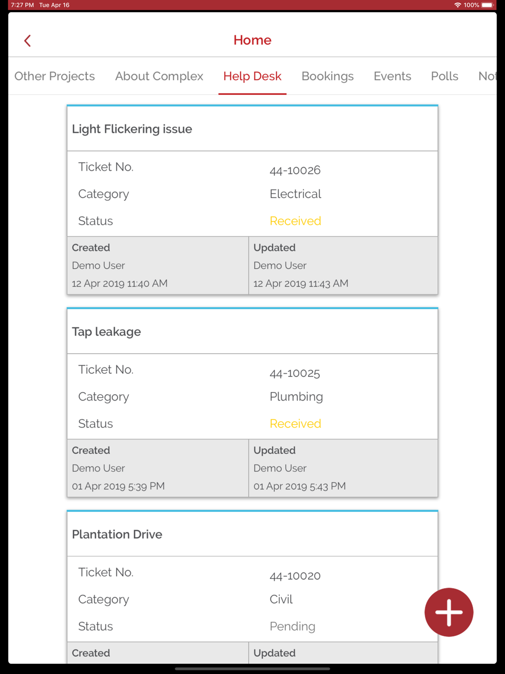 Lodge any complaint related to your apartment or complex and track its progress to closure. If you have any query or suggestion too, it's easy to raise it using App’s Help Desk feature.