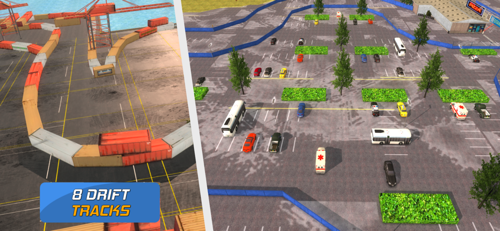 Drift in a whole city with realistic and intense traffic, and try 8 tracks to pull off super long drifts.