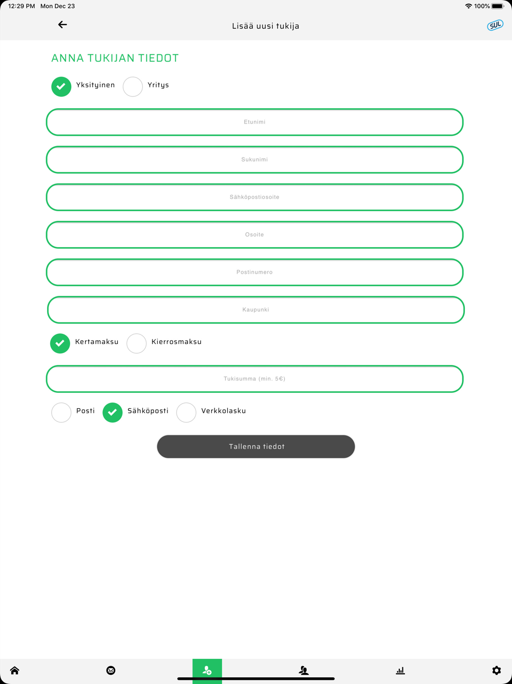 • auttaa kerääjää hallitsemaan tukijaverkostoa
